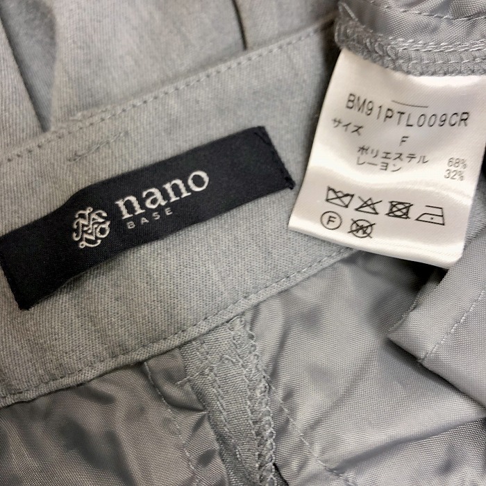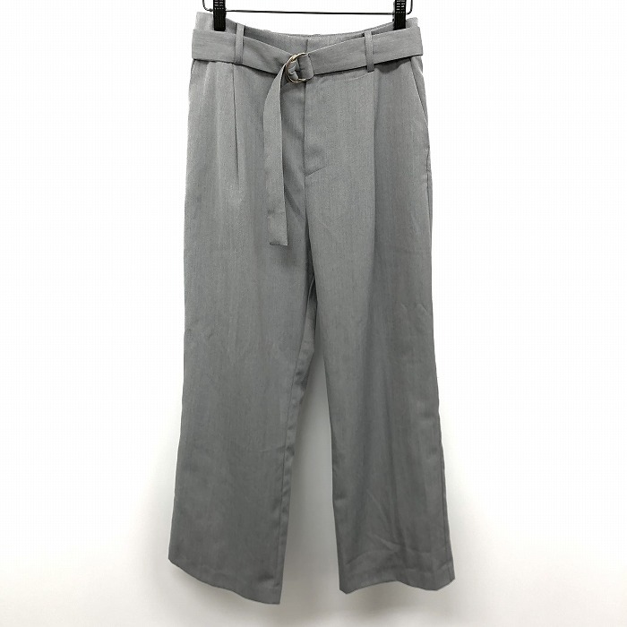 商品タイトル | nano&co ナノアンドコー F レディース 若干薄手 1タック ストレート ワイドパンツ 無地 ベルト付き ジップフライ ポリ×レーヨン 杢グレー |