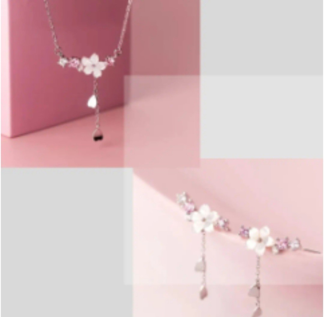 ピンク系のシンプルなフラワーピアスとネックレスのセットです