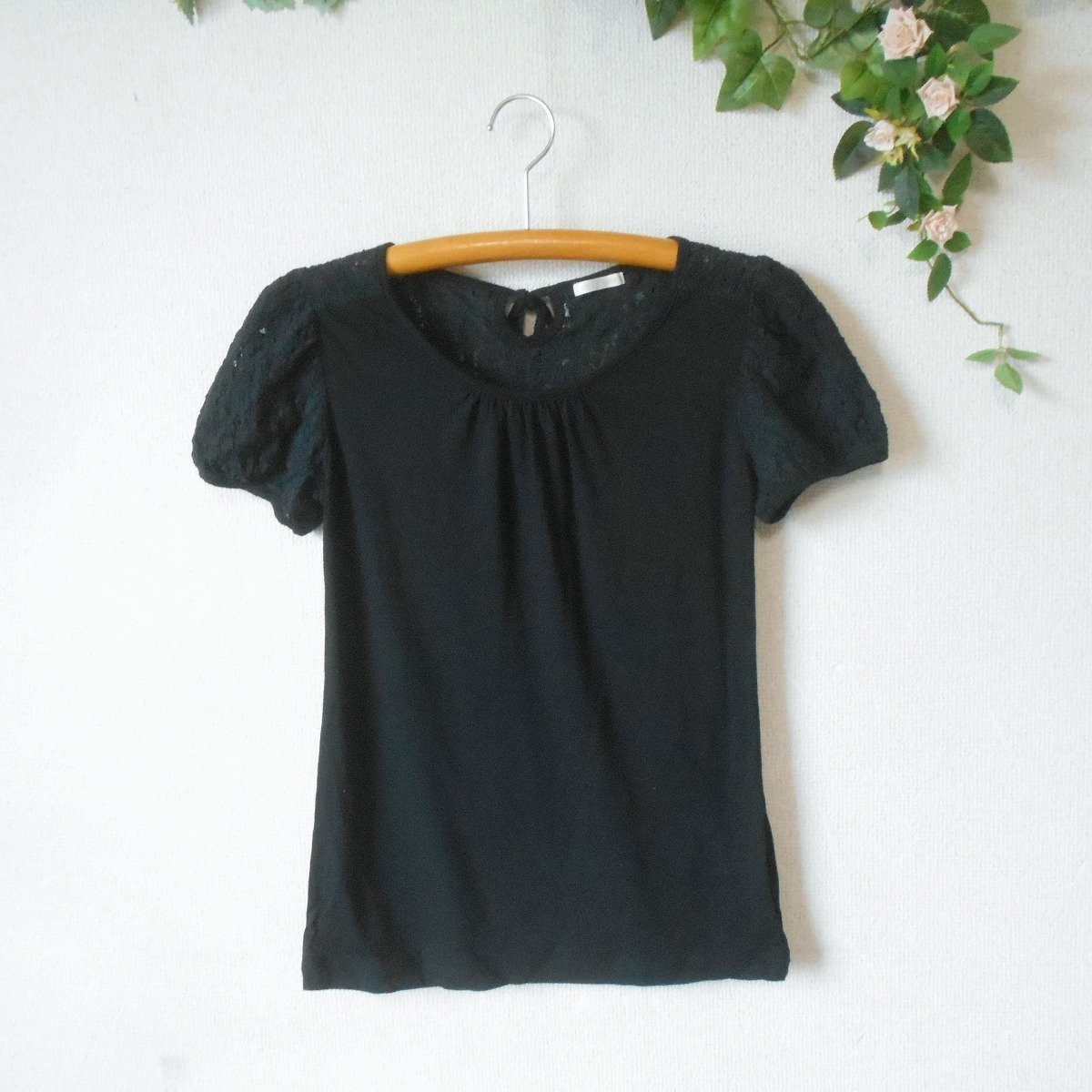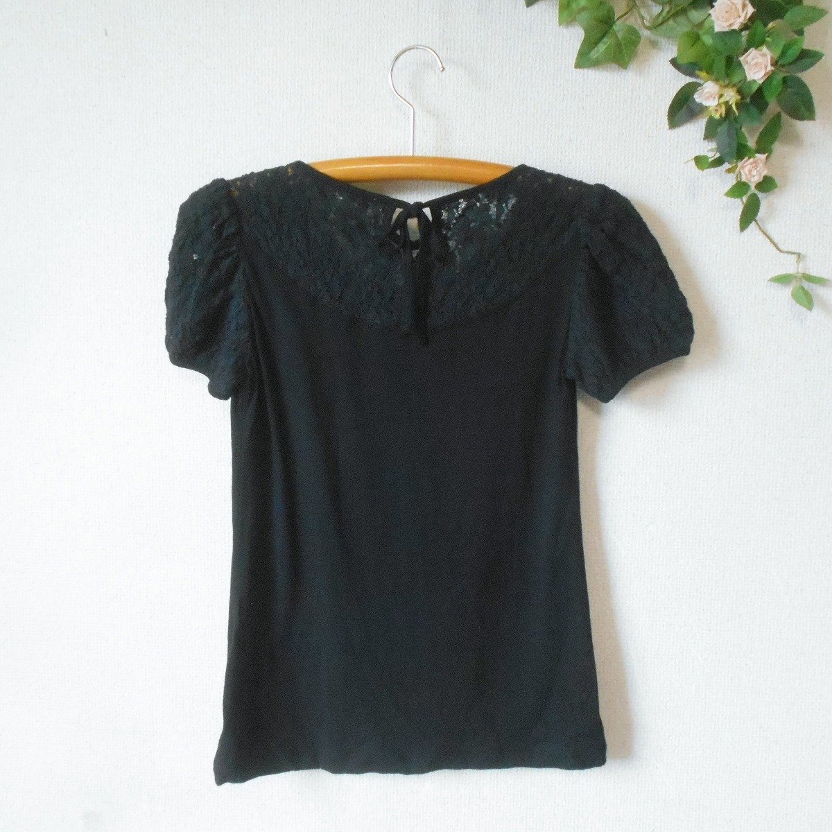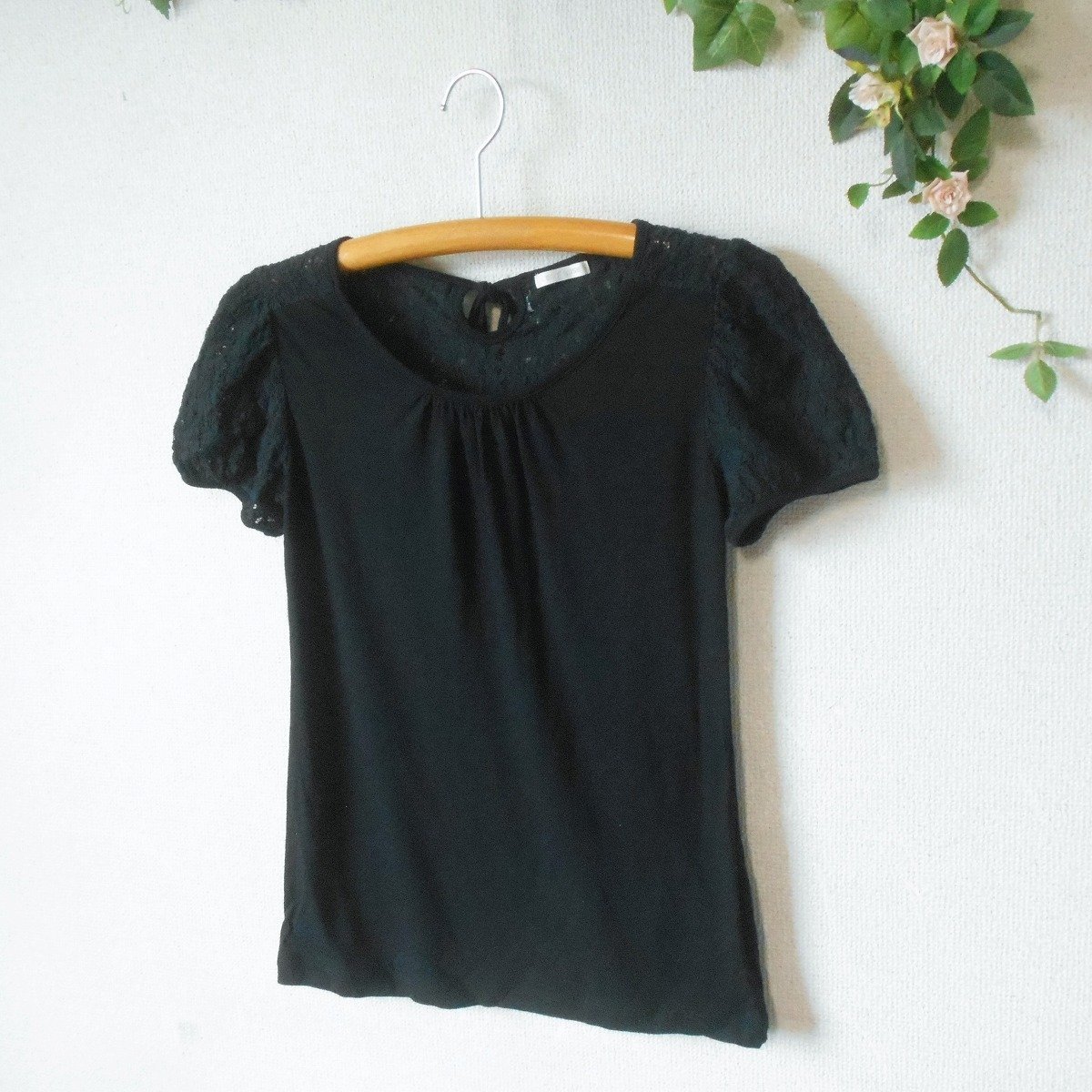 【ポイント】レストローズの半袖カットソーになります。お色は黒色で、お袖と背中の上部がレースに切替えられた、とってもお洒落な一着です。