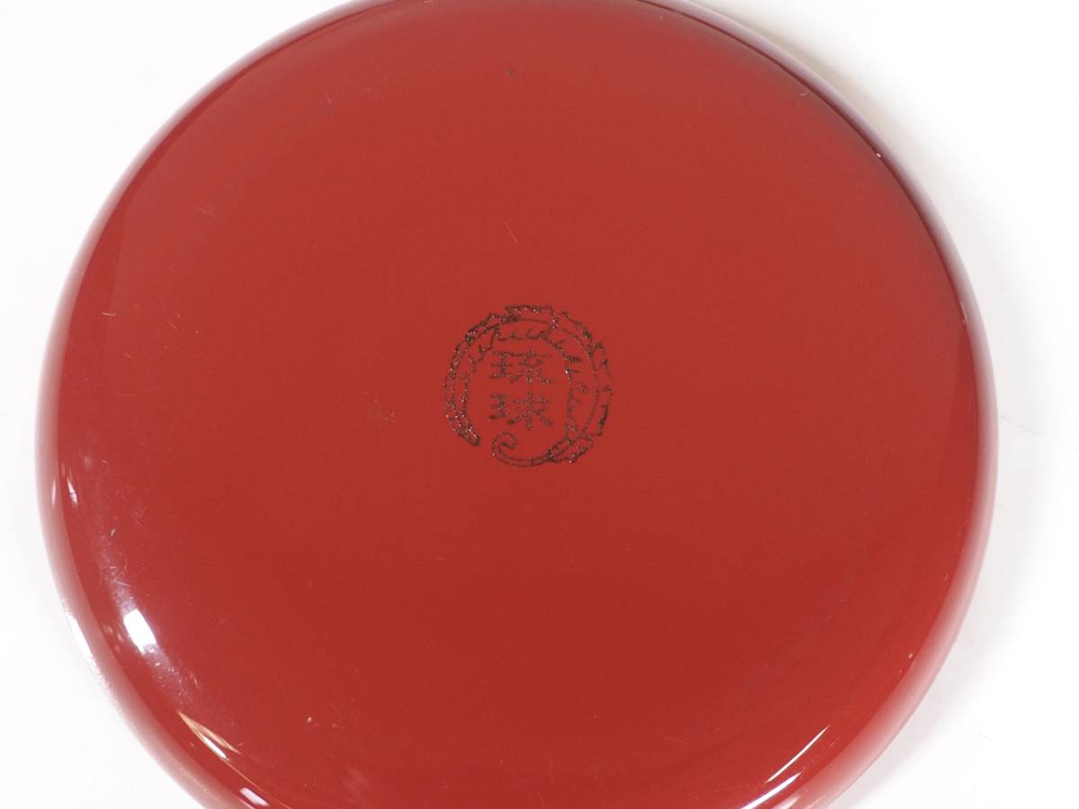 昭和ビンテージ  茶道具  琉球漆芸「堆錦」のお盆と茶托十客揃