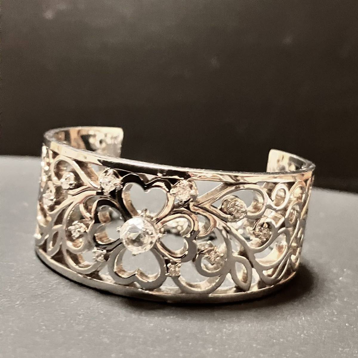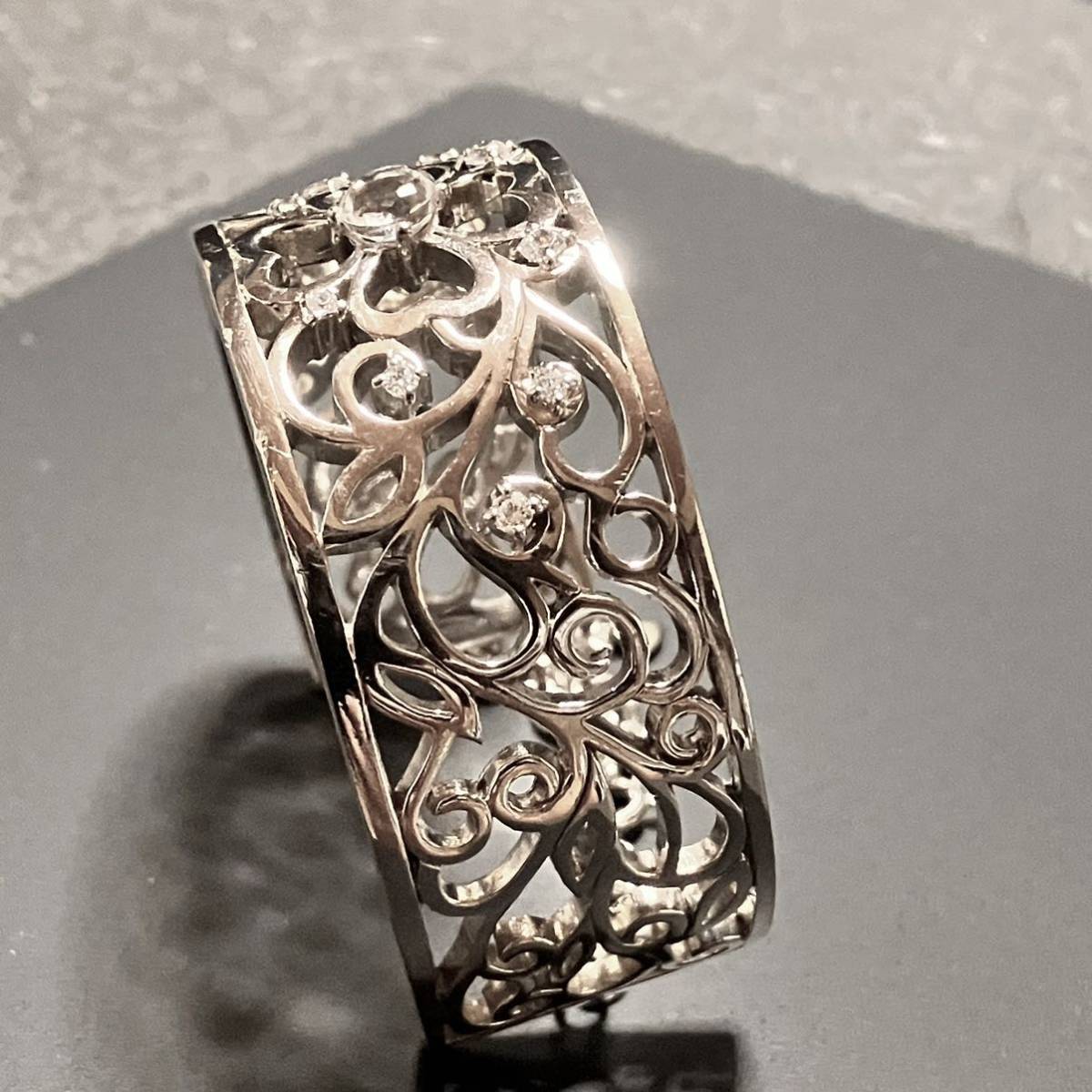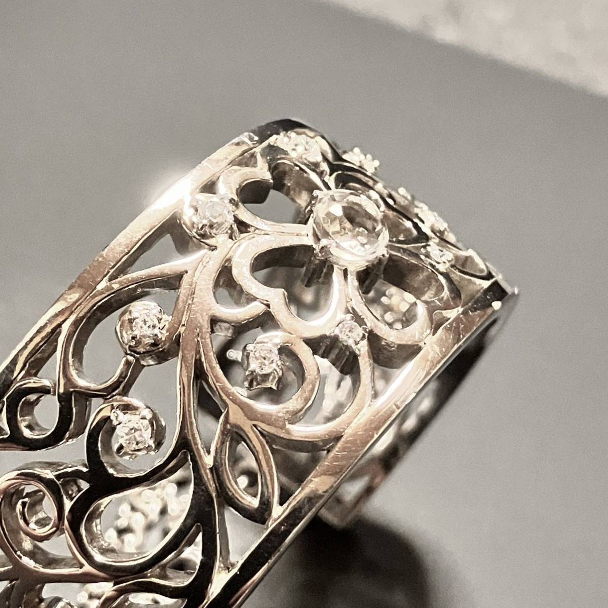 透かし模様とクリアストーンが