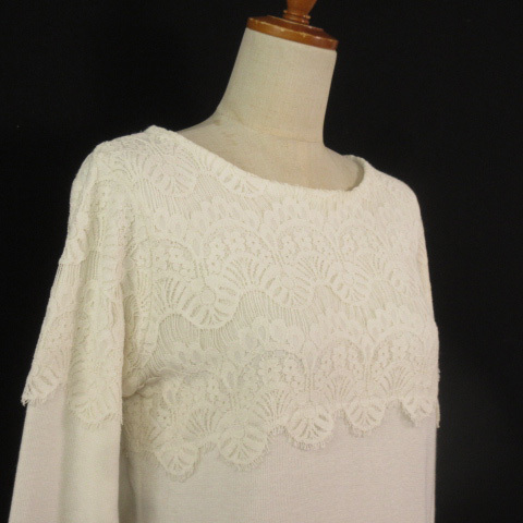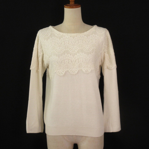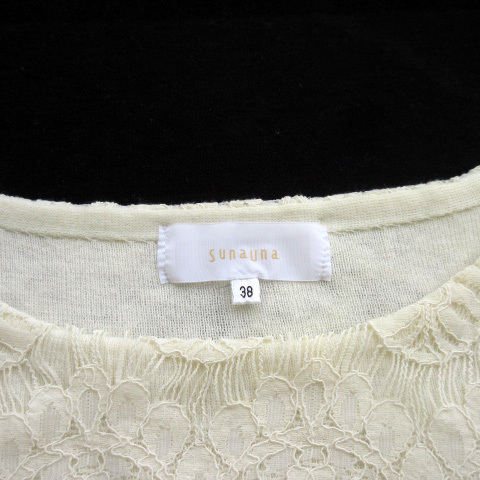 スーナウーナ Sunauna カットソー ニット レース 長袖 スリット 38 白 ホワイト レディース