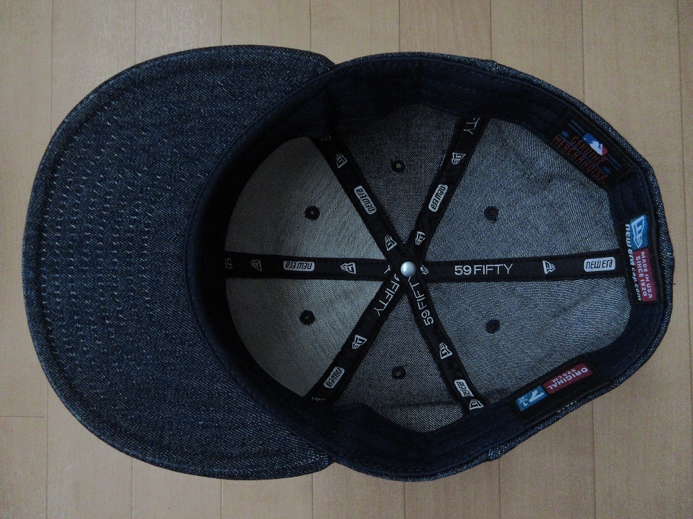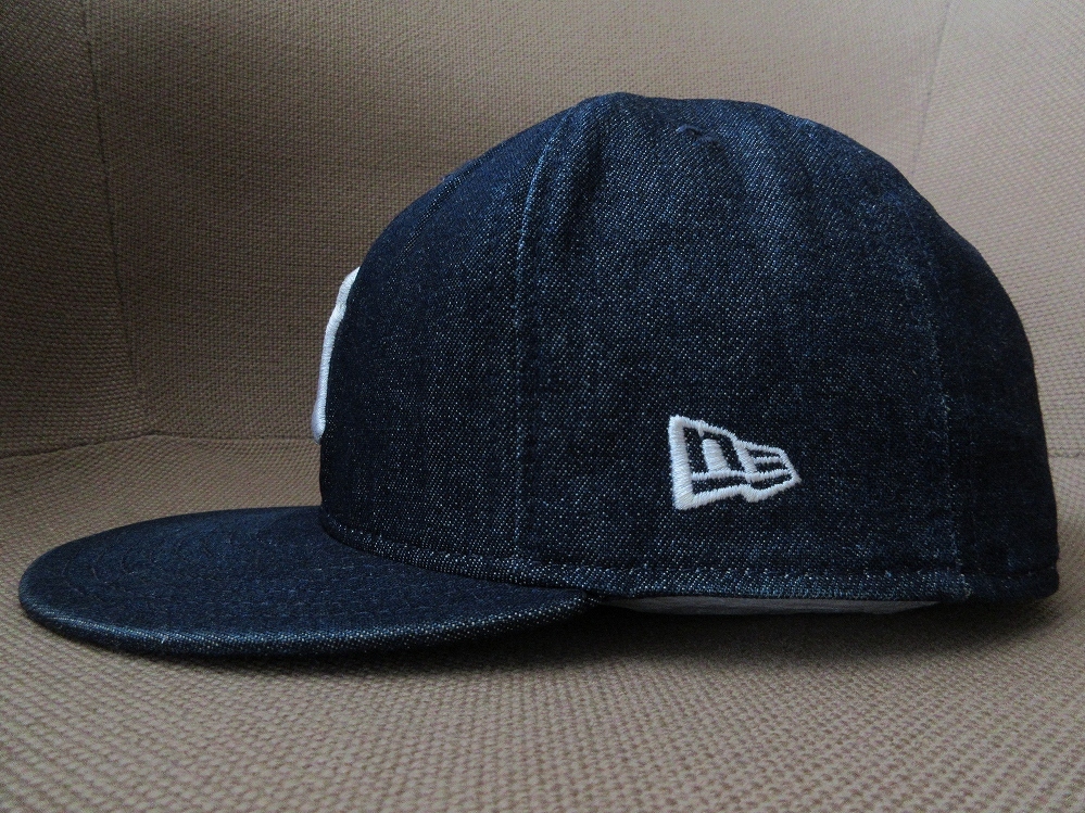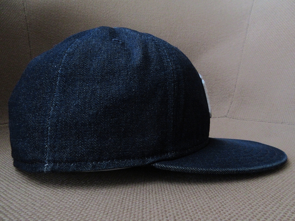 2020年まで「田中将大(Masahiro Tanaka)」選手が所属し、かつて日本が誇る「ゴジラ」こと「松井秀喜(Hideki Matsui/)」選手、「イチロー(ICHIRO(鈴木一朗/Ichiro Suzuki)」選手、「黒田博樹(Hiroki Kuroda)」選手、「伊良部秀輝(Hideki Irabu)」選手、「井川慶(Kei Igawa)」選手等が在籍した事でも知られる、アメリカ・ニューヨーク州・ニューヨーク・ブロンクスに本拠地を構える「MLB(Major League Baseball/メジャーリーグベースボール)」の名門チーム、〔New York Yankees(ニューヨーク・ヤンキース)〕の、1920年に、アメリカ・ニューヨーク州・バッファローで「Ehrhardt Koch(エルハルド・クック)」氏によって創業された、北米4大プロスポーツリーグが誇る、アメリカの29チーム及びカナダ所在の1チーム、合計30球団により編成される、世界で最高峰のプロ野球リーグ「Major League Baseball(MLB/メジャーリーグベースボール)」唯一の公式選手用キャップサプライヤーにして、ストリートにベースボール・キャップを普及させたオリジネーターとして知られる老舗帽子製造会社「NEW ERA(NEWERA/ニューエラ)」製の、インナー部等を除くキャップに、旧き良き時代の「ヴィンテージ・クロージング(Vintage closing)」、「ワーク(Work)」ウェアへのオマージュを感じさせる「デニム(Denim)」生地を使用し、キャップフロント部に、シンプルながらインパクトのある「NY」ロゴの刺繍、キャップ左サイド(左耳側)付近に「NEW ERA(NEWERA/ニューエラ)」のアイコンロゴとして知られる「nE」ロゴの刺繍、キャップ後頭部に「MLB(Major League Baseball/メジャーリーグベースボール)」ロゴの刺繍が施された、アメリカ製〔オールド(Old/Vintage/ヴィンテージ)・NEW ERA製・59FIFTY・NYロゴ刺繍・デニム・ベースボール・キャップ〕になります。