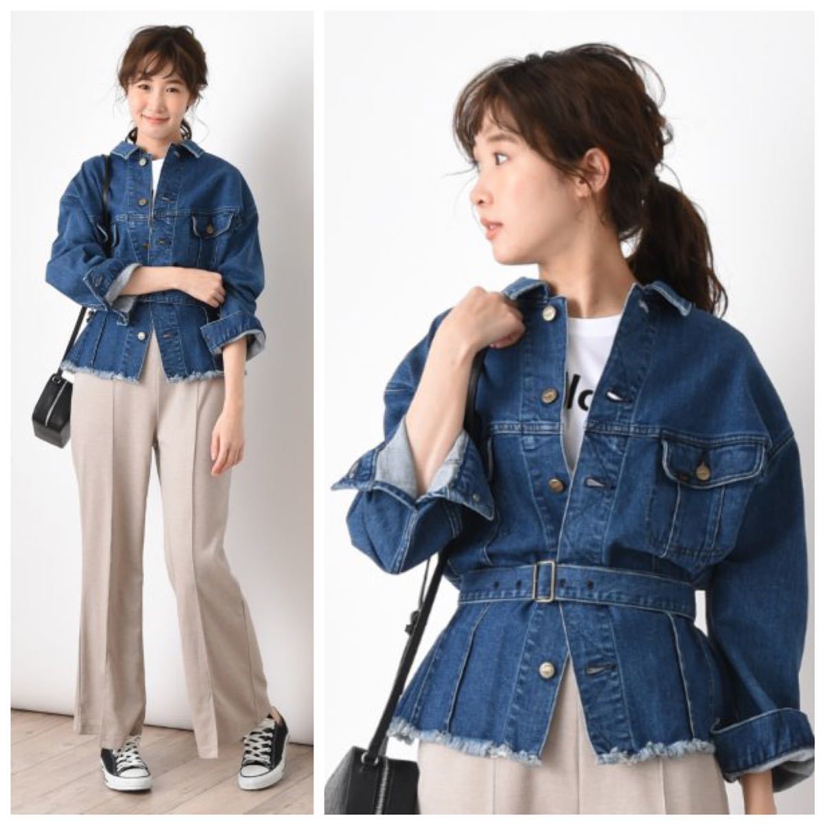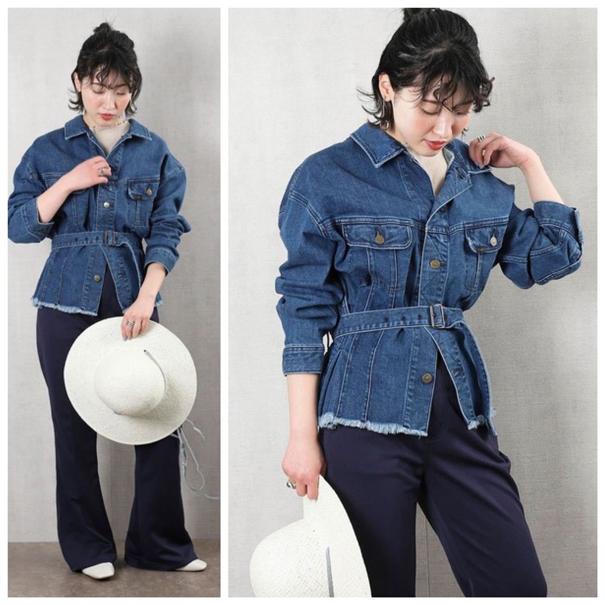 スタイルアップ効果抜群のウエストマークが可愛いデニムジャケット