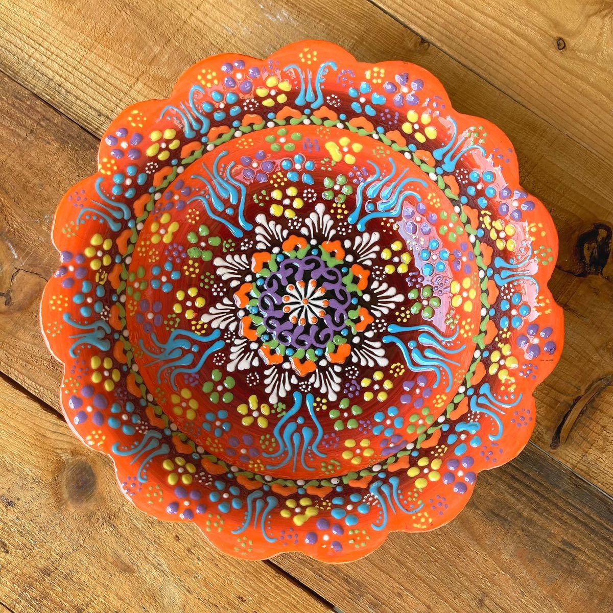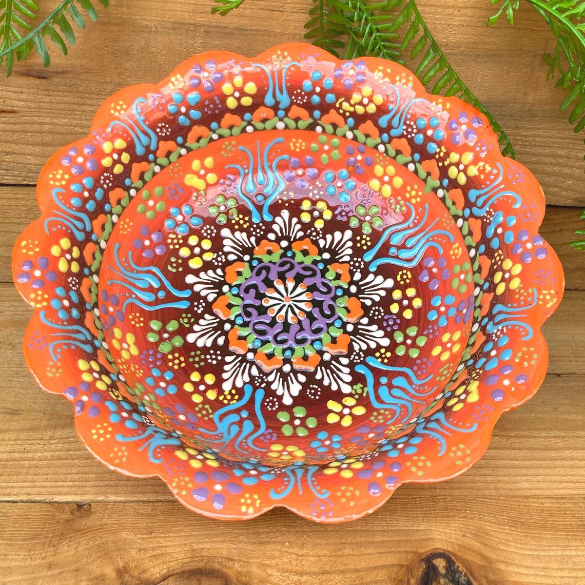 トルコの職人が1点1点絵付けしたかわいいトルコセラミック陶器のボウル皿です