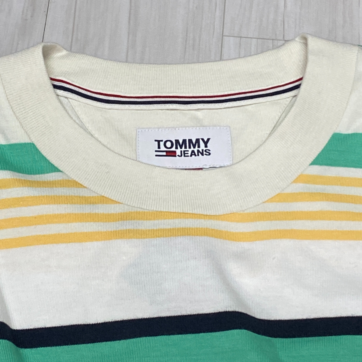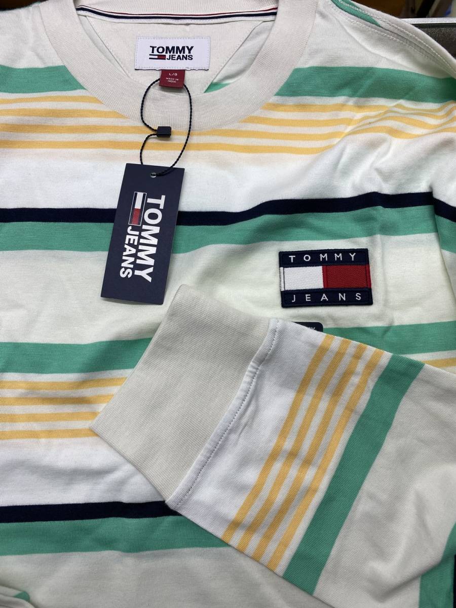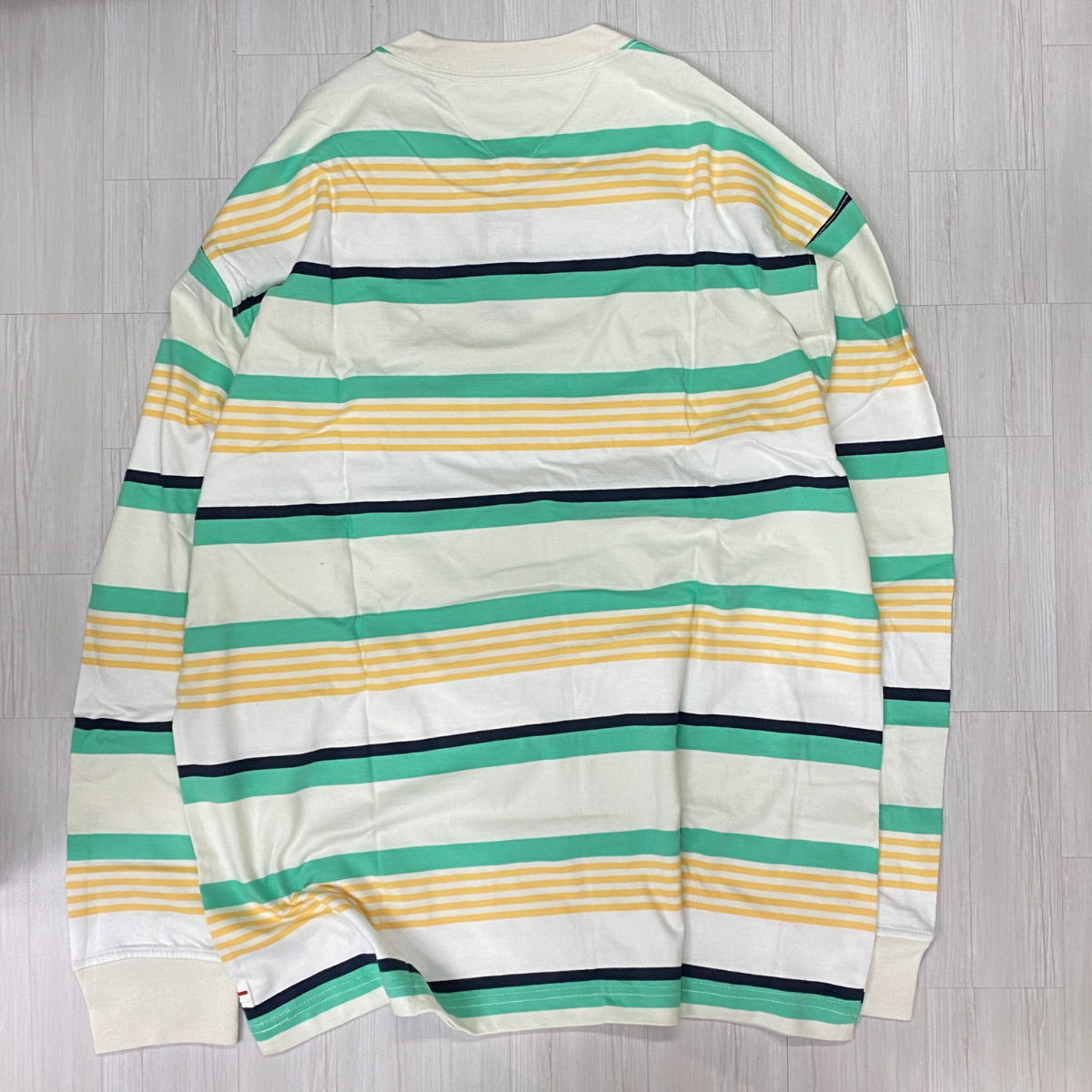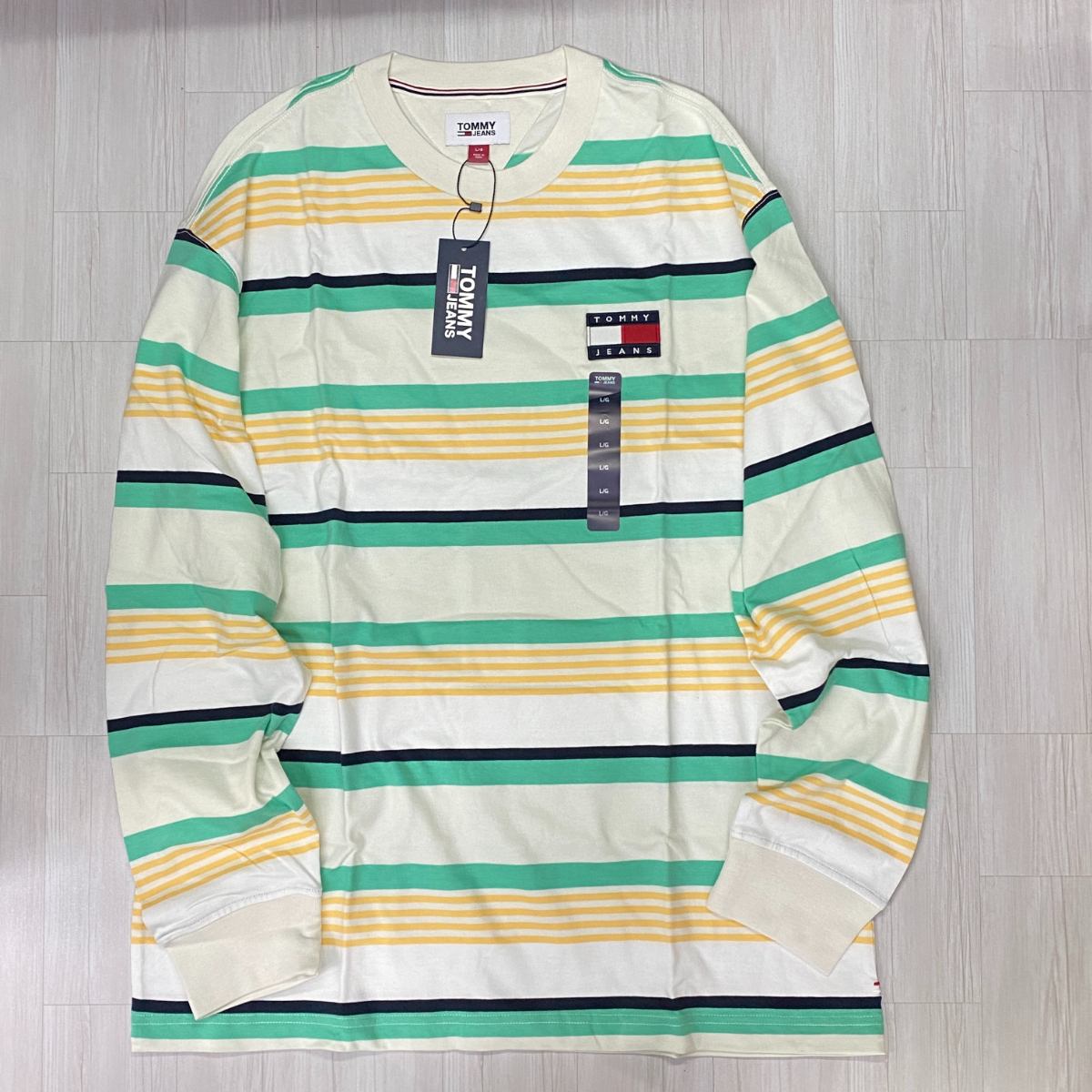 TOMMY HILFIGER USA正規品 【XL】 TommyJeans トミージーンズ TJ オーバーサイズ 90s ストライプ 長袖Tシャツ バッジロゴ (R4F-20) 綿100%