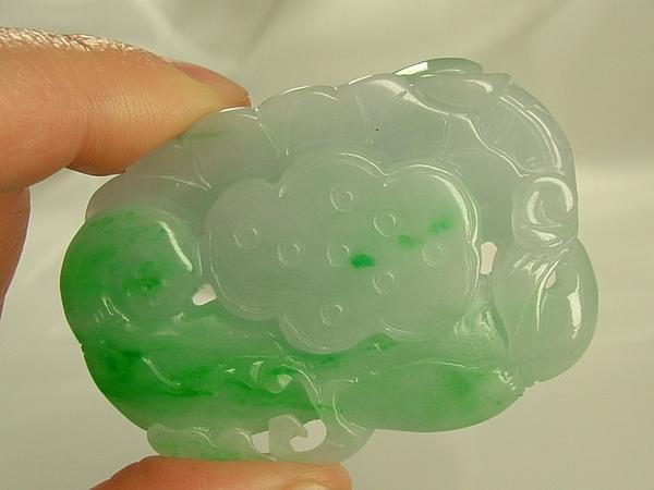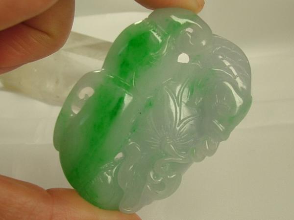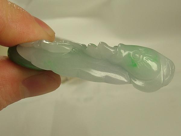 | ▲商品説明▲ | サイズ:53×36×13mm 重さ:33g 緑色が綺麗なミャンマー翡翠。蓮に鯉が彫り込まれた正統的な図柄です。 ※専用ケース付き。 |