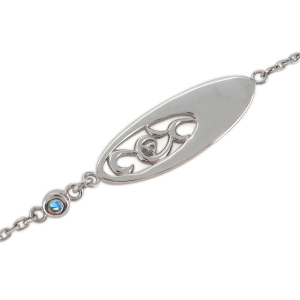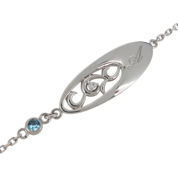 11月誕生石ブルートパーズを使用したプラチナ製の、唐草モチーフのブレスレットです。