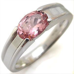 10月誕生石ピンクトルマリン(オーバル)を一粒使用したシンプルデザインのプラチナ製リングです。