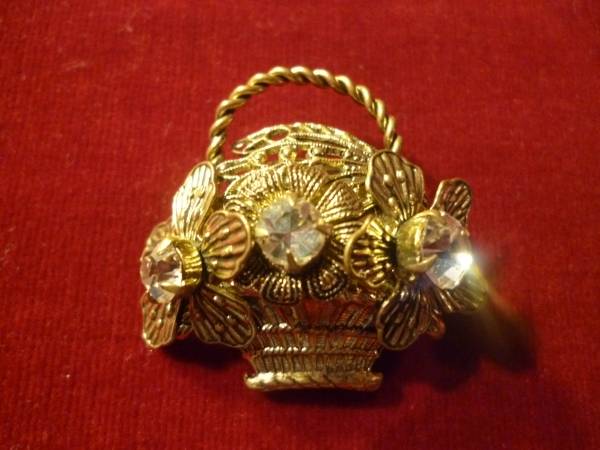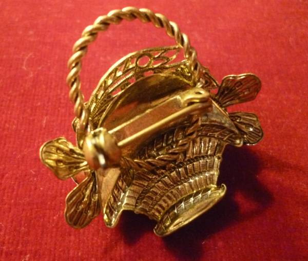 フランスヴィンテージ50'sブローチ/花かごラインストーン30'sSWINGレトロヨーロッパアンティークアクセサリーΓOT