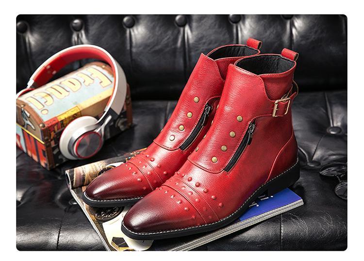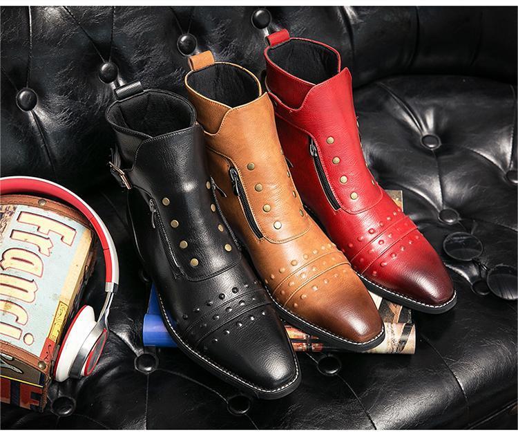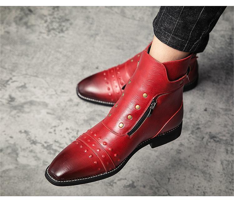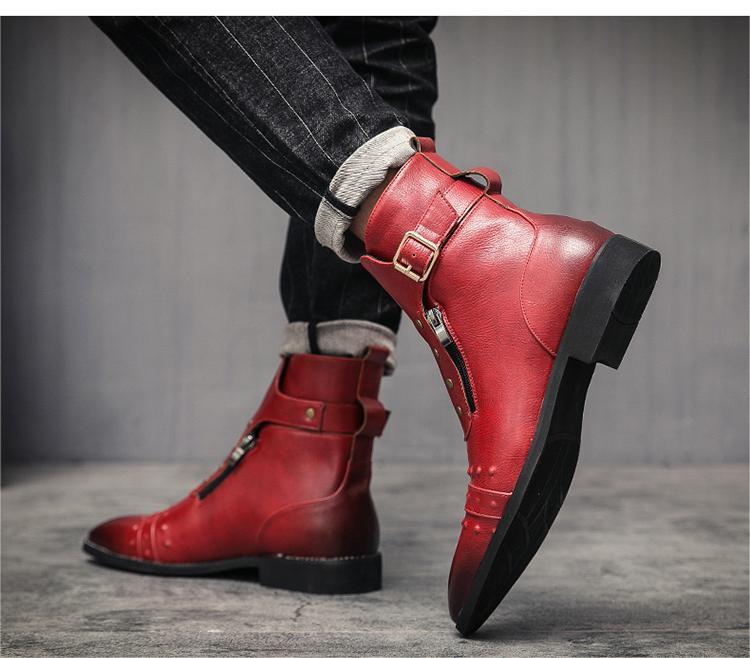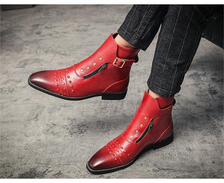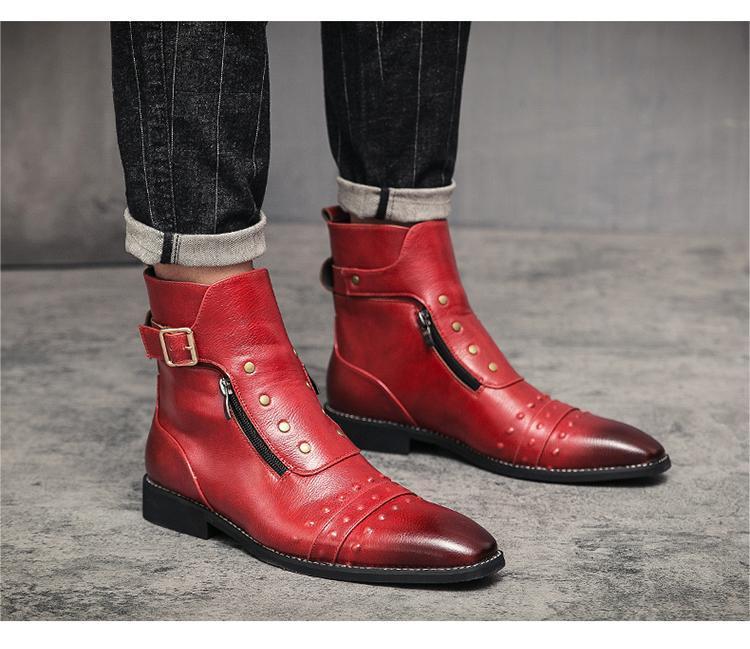 ★新品★メンズ TG21619-25.0cm/40 ショートブーツ レッド(3色) ビジネスシューズ ワークブーツ サイドファスナー