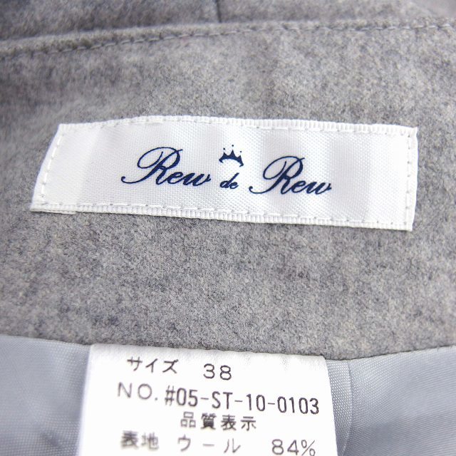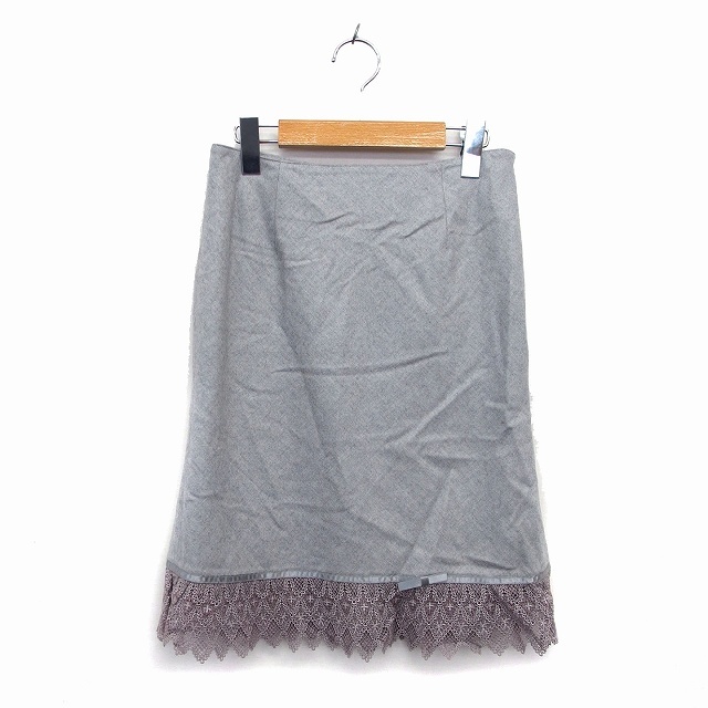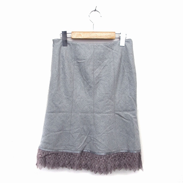 ルゥデルゥ Rew de Rew スカート フレア ひざ丈 ウール レース リボン サイドジップ 38 グレー /NT9 レディース