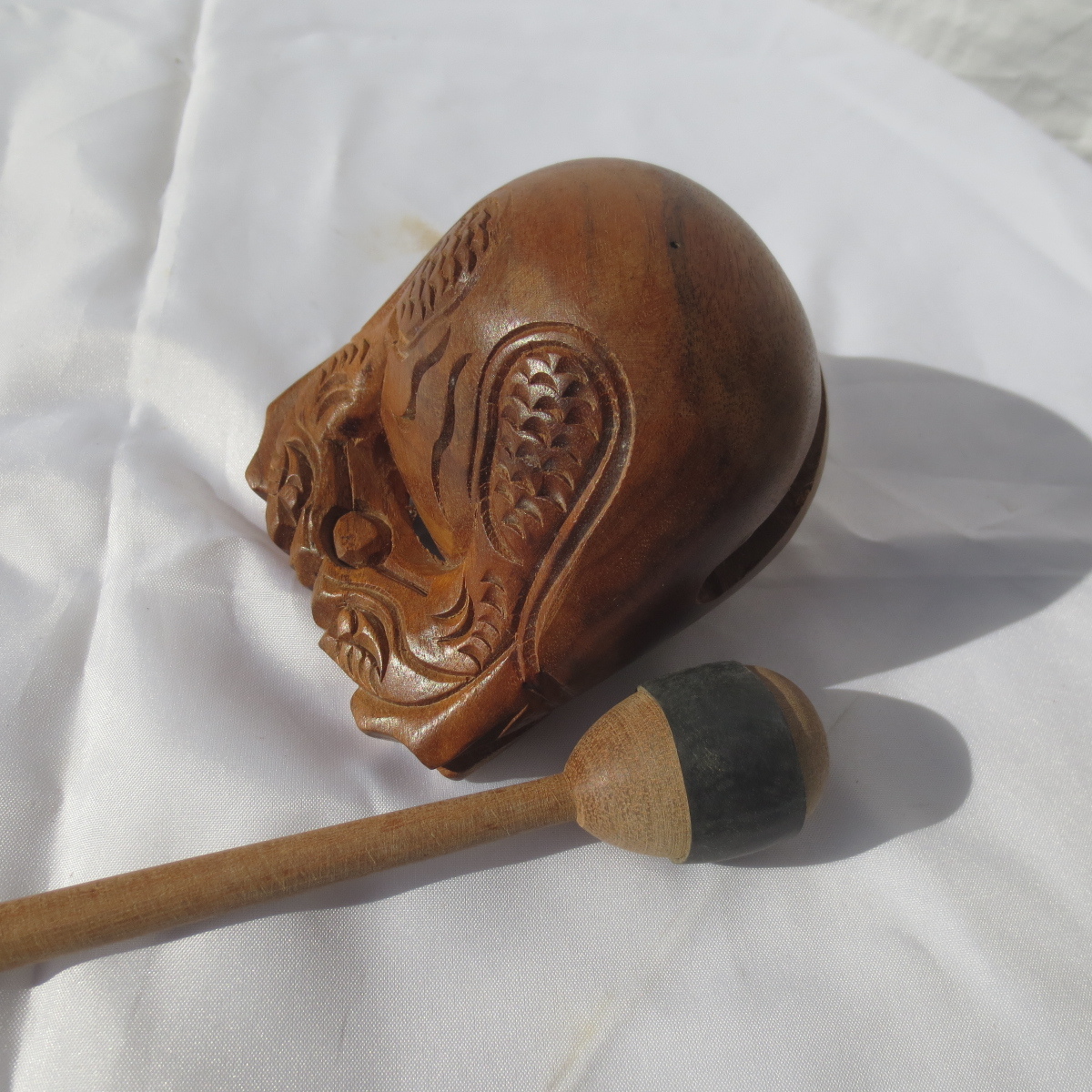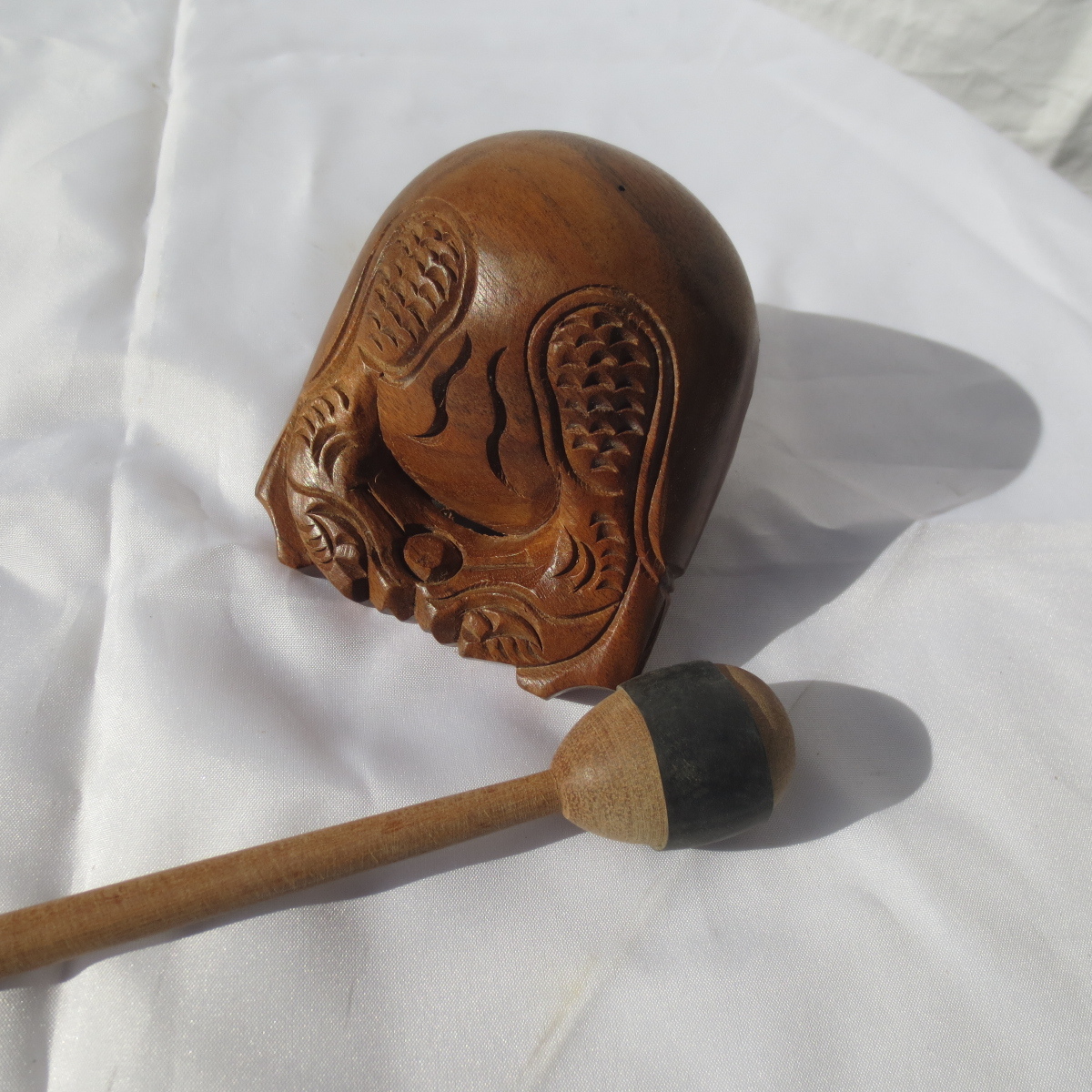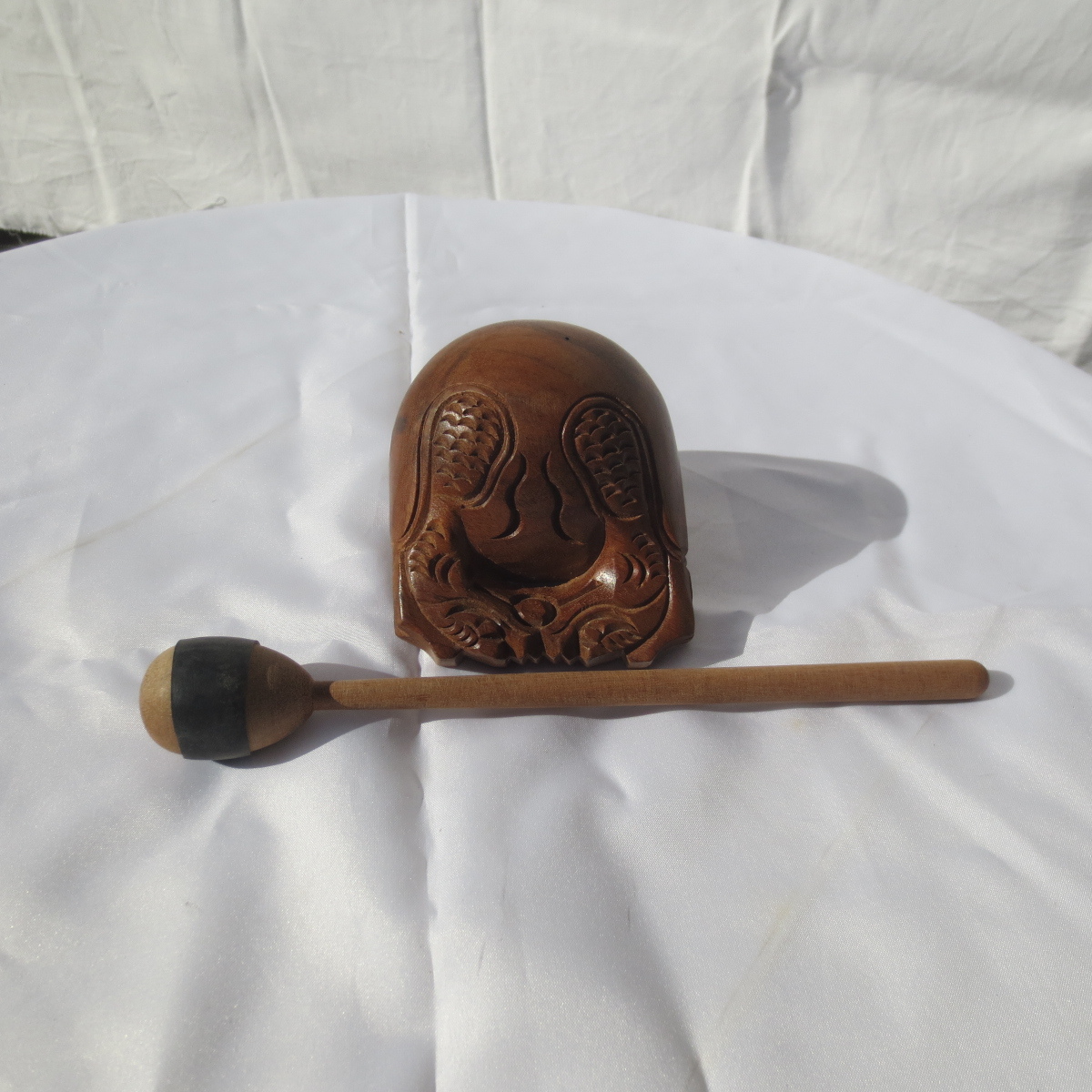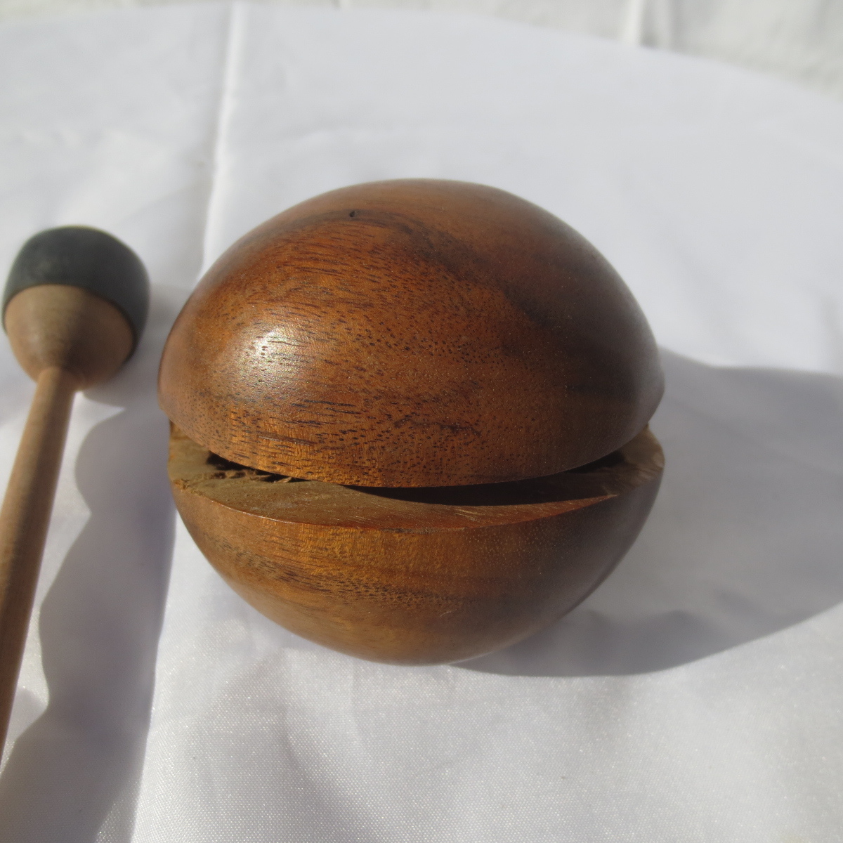 小さい 木魚 もくぎょ 欅 ケヤキ 幅2.5寸 (約7.5cm)撥 ばち付