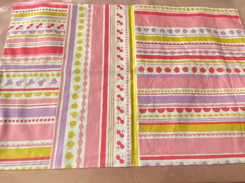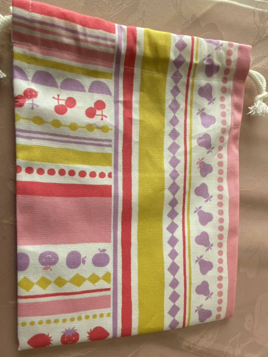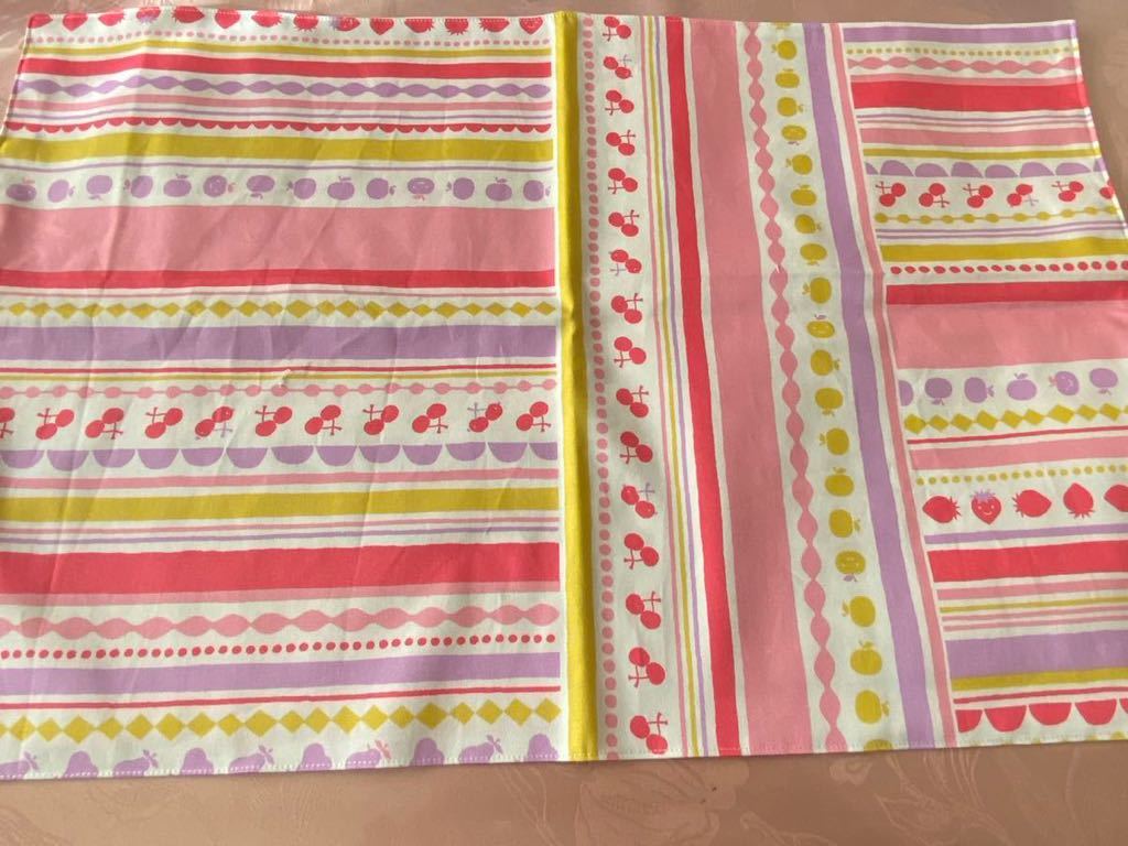 No.158 大判裏付ランチョンマット&巾着 ハンドメイド  40x60 ピンク色フルーツ柄