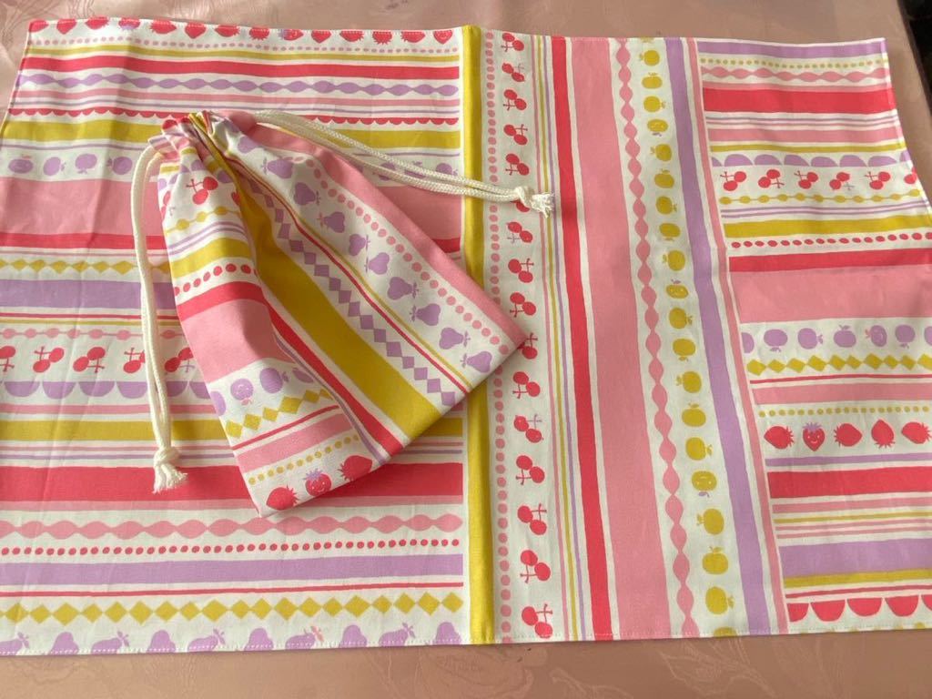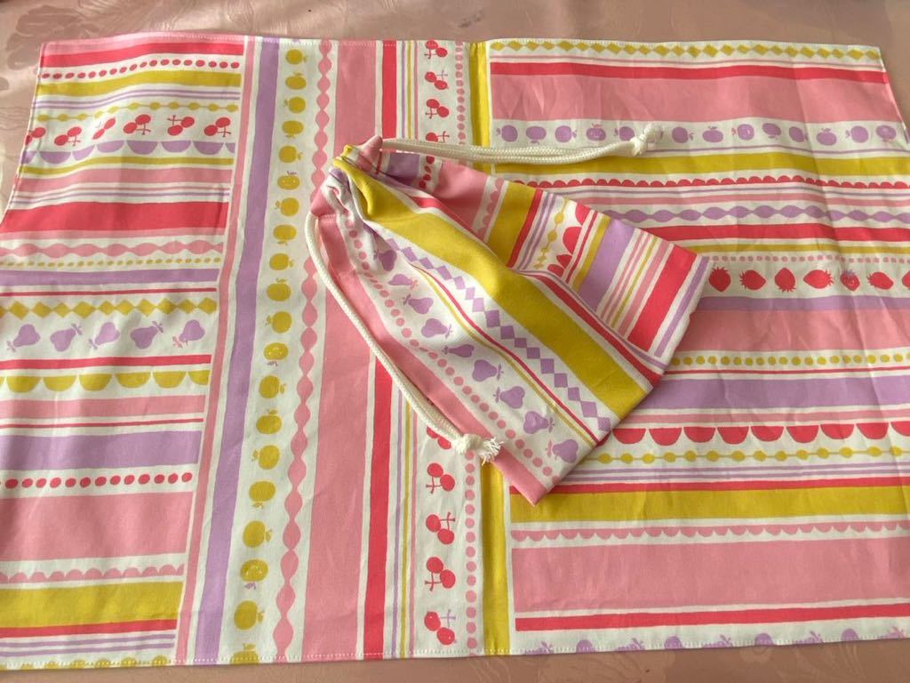 手作りの大判裏付ランチョンマット&巾着袋になります。