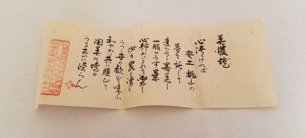 [未使用]美濃焼 岐阜県 瑞光窯 佐々木八十二 雪月花 陶器 織部焼 酒器 盃 3客 しおり★02V-449