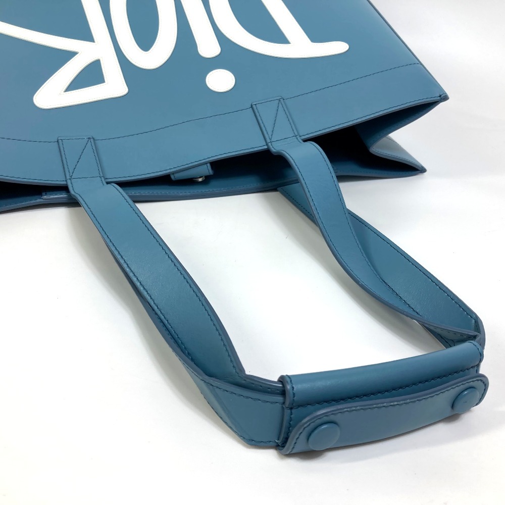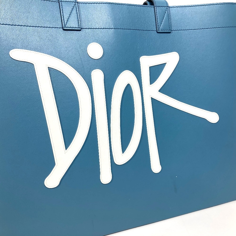 Dior ディオール ロゴ ショーンステューシーコラボ ハンドバッグ トートバッグ レザー ブルー メンズ.【中古】