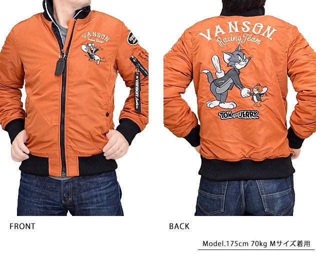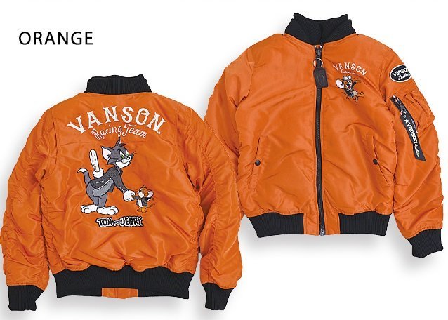vanson×TOM&JERRY 刺繍MA-1フライトジャケット◆vanson オレンジXXLサイズ TJV-2243 ヴァンソン バンソン トムとジェリー ミリタリー