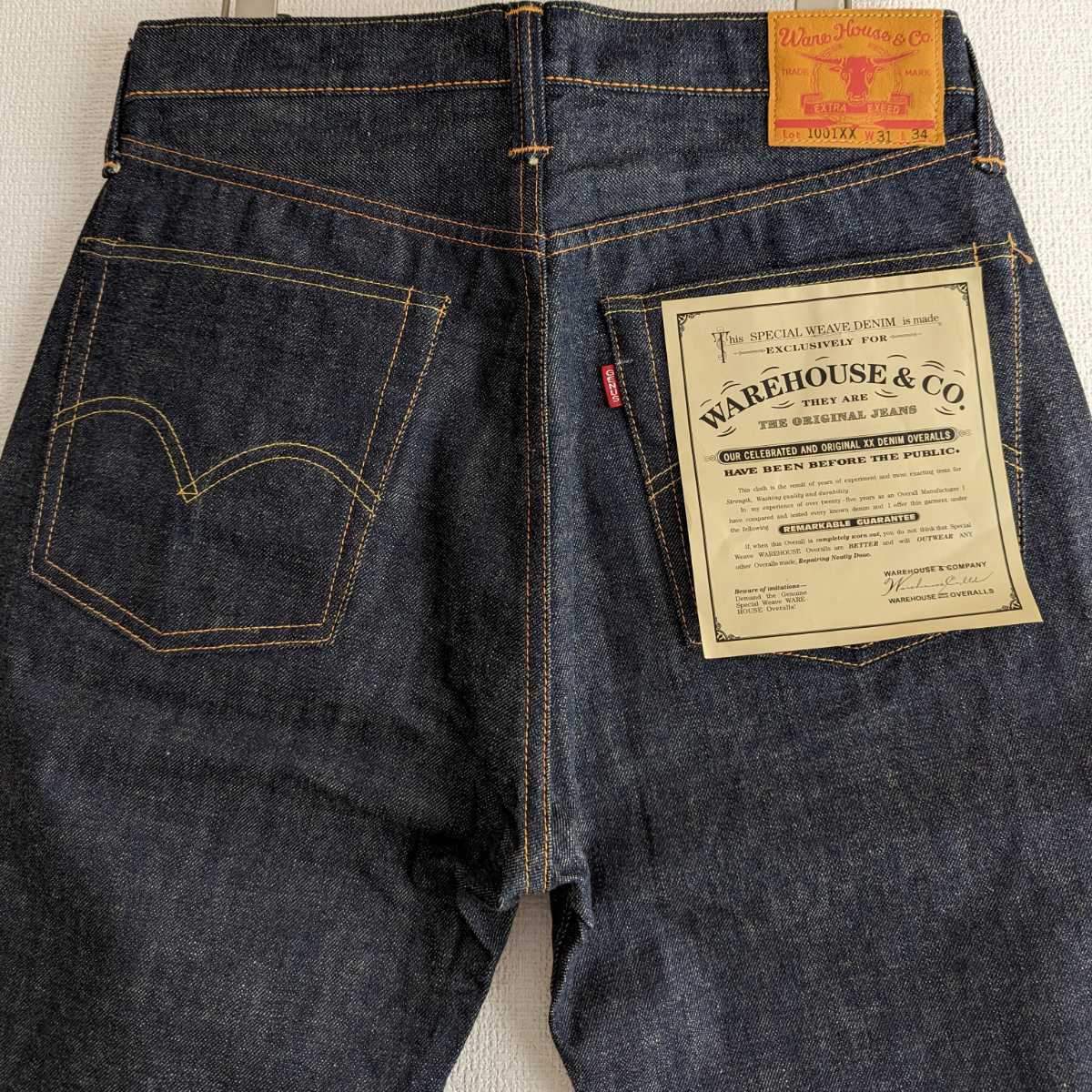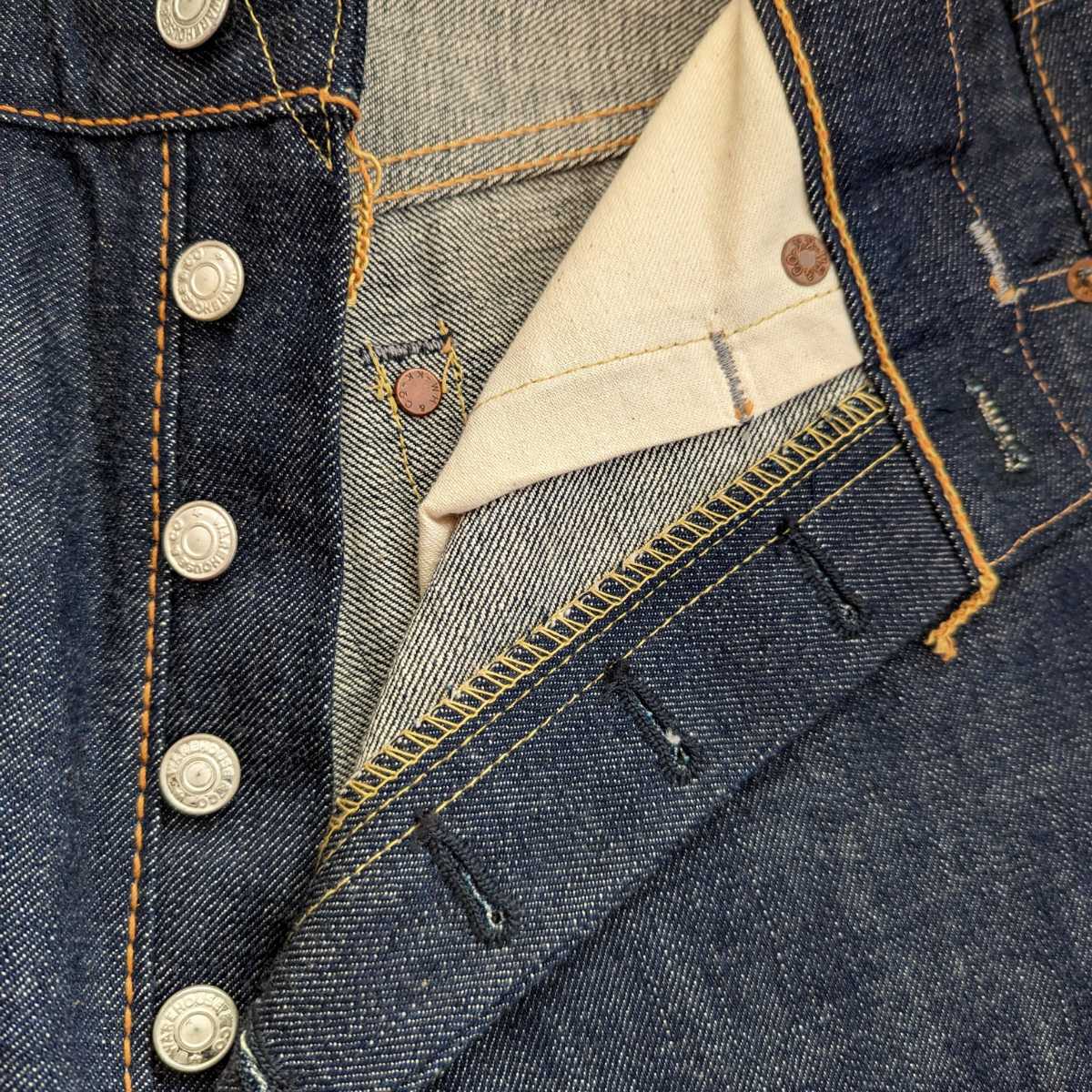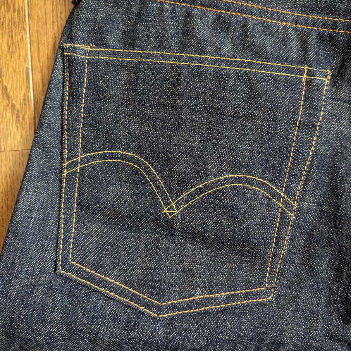 この頃の1001XXは複数の仕様が混在していた記憶がありますが、こちらは酸化剤入りの生地&アーキュエイトステッチの組み合わせです。