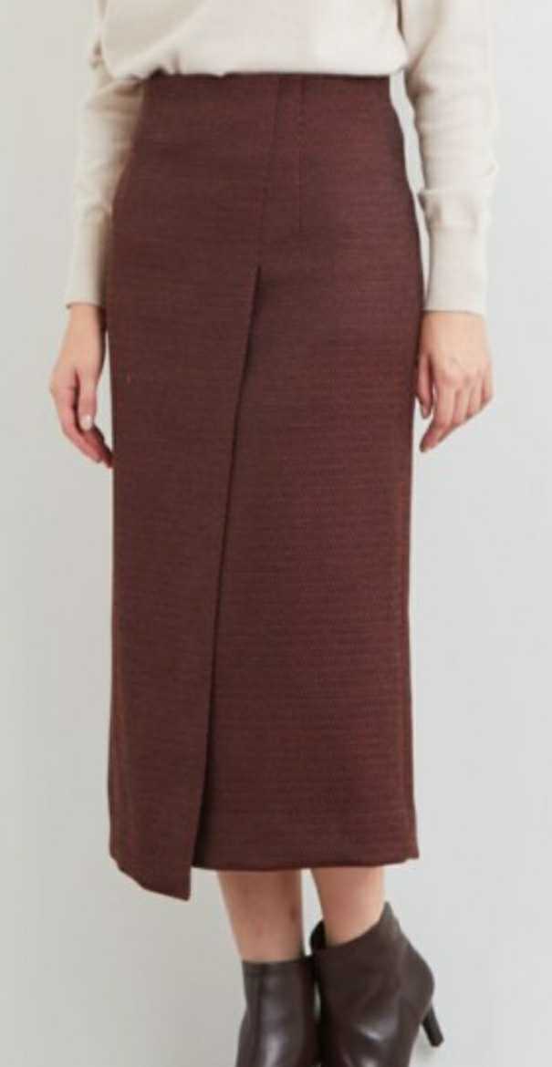 長め丈のタイトシルエット&ラップ風デザインがポイントです。