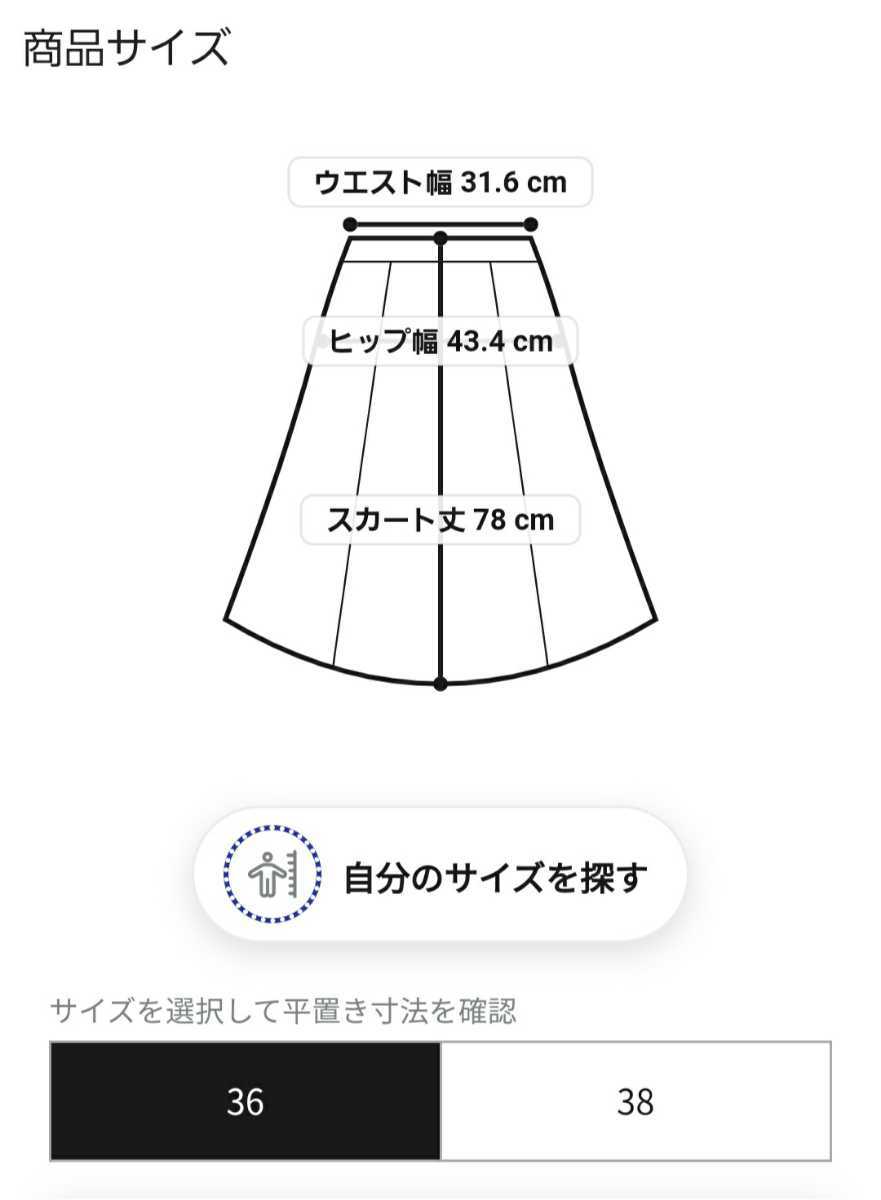 36:ウエスト63.2 スカート丈78.0 ヒップ86.8