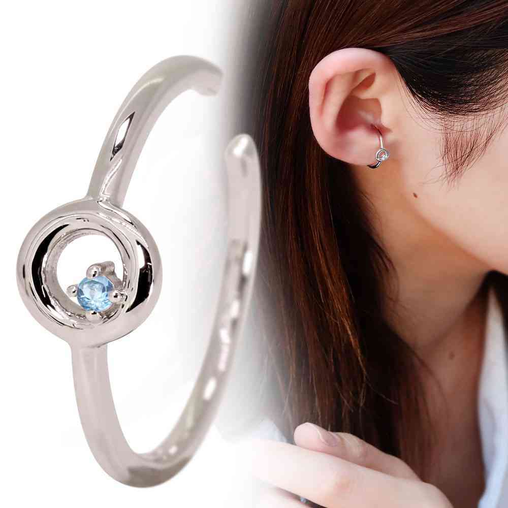 11月誕生石ブルートパーズを使用したプラチナ製の、幾何学デザイン(丸)のイヤーカフです。