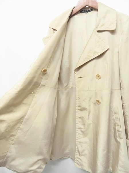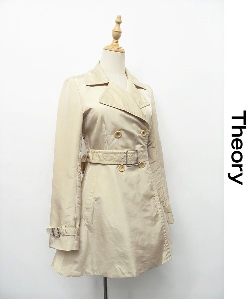 J237/ THEORY トレンチコート ハーフコート ジャケット ウエストベルト ナイロン 2 M 光沢 ベージュ