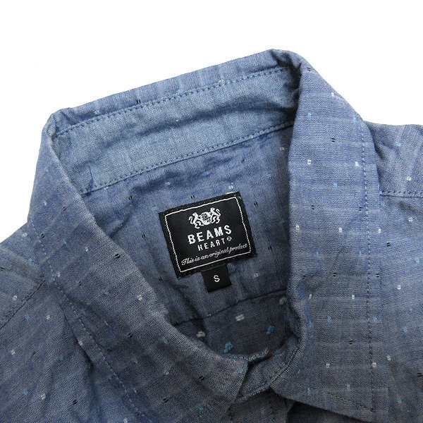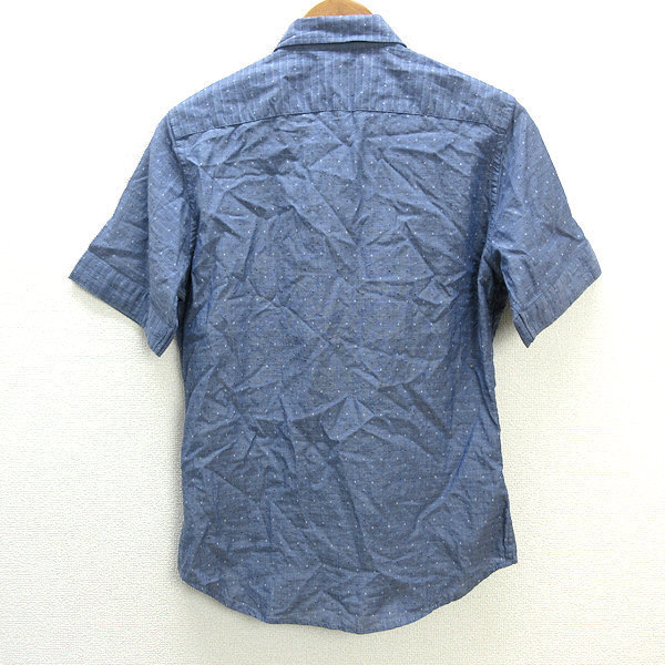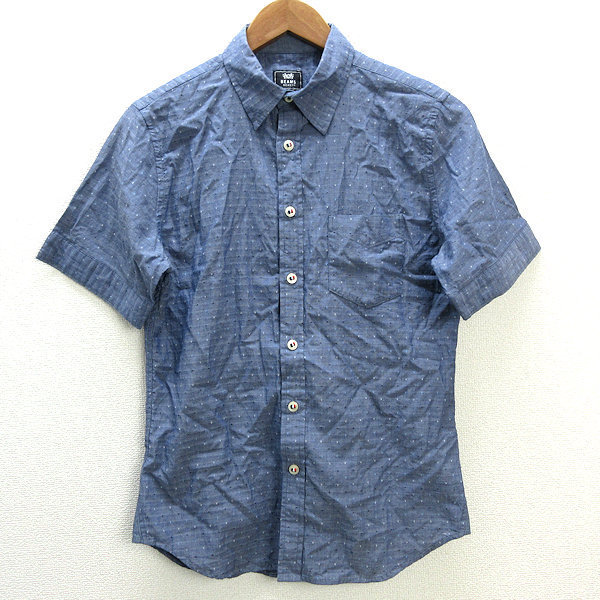 s■ビームス/BEAMS ドット刺繍柄 半袖シャツ/胸ポケット付き【S】紺系/MENS/140【中古】