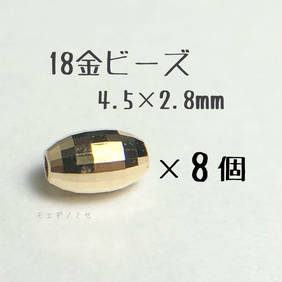 K18 横長ミラーボールビーズ 8個セット 18金 日本製アクセサリーパーツ 18k 棗型 ミラーボールカット ハンドメイド素材 18金無垢