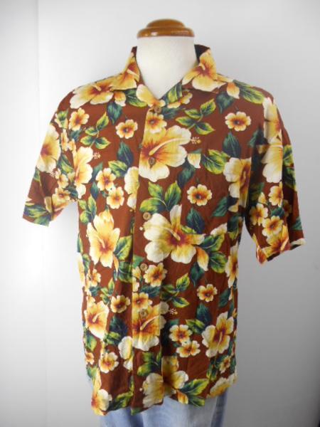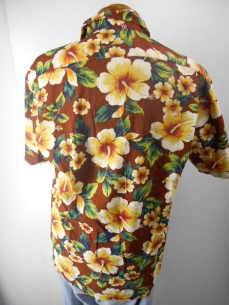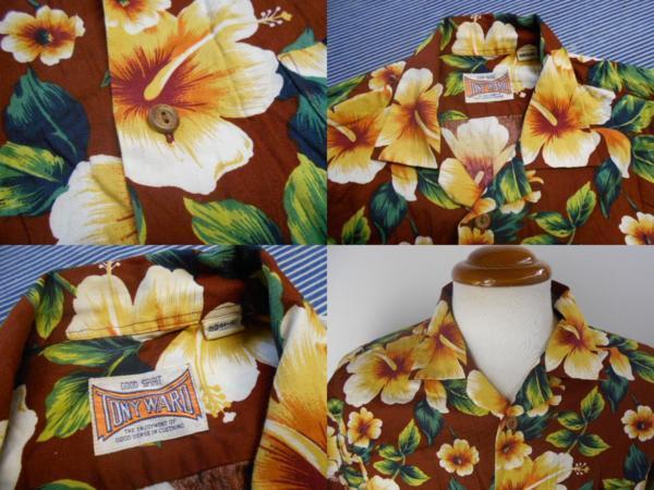 昭和レトロ アロハ M 茶 tony ward 日本製 メンズ 半袖 古着 c899