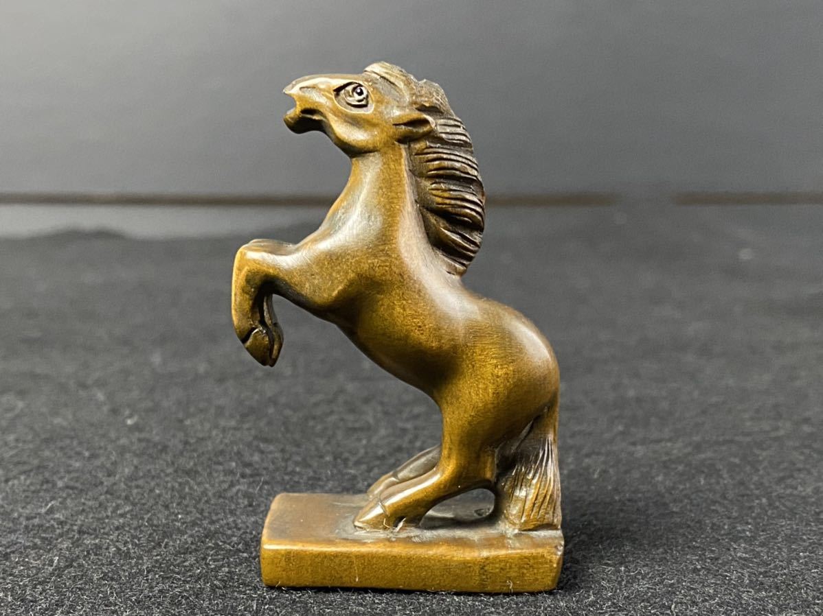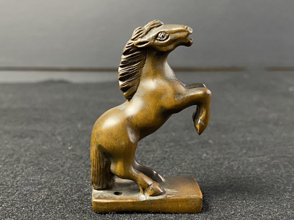 [JK692] 木製 根付 馬 細密彫刻 提げ物 煙草入れ 木彫 拓植
