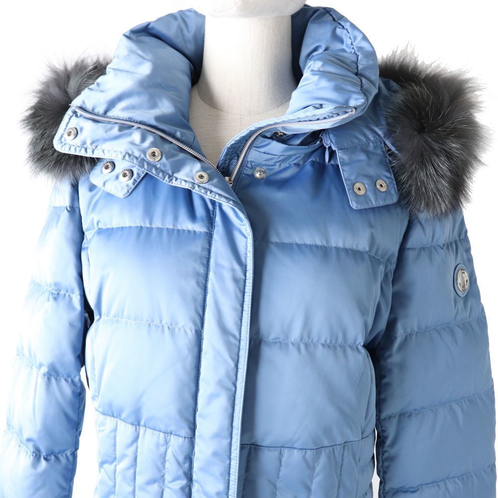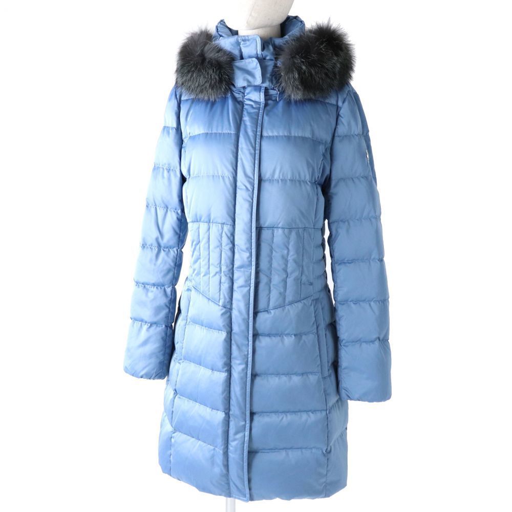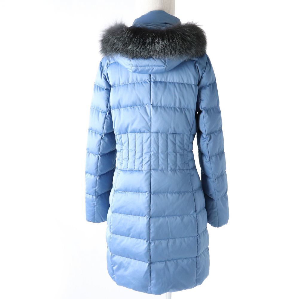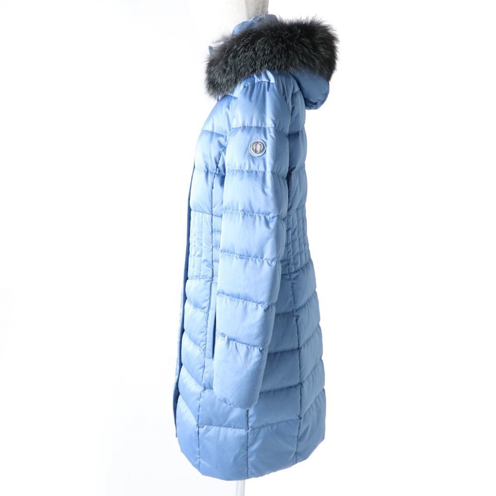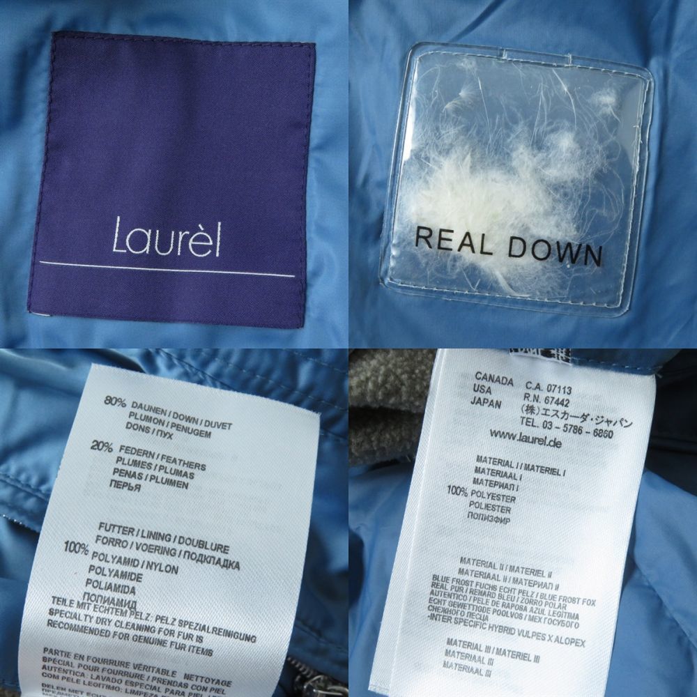 定価13万円●Laurel ローレル● 正規品 ロゴ金具 サガフォックス×フード付 ZIP UP ロングダウンコート ライトブルー レディース 36
