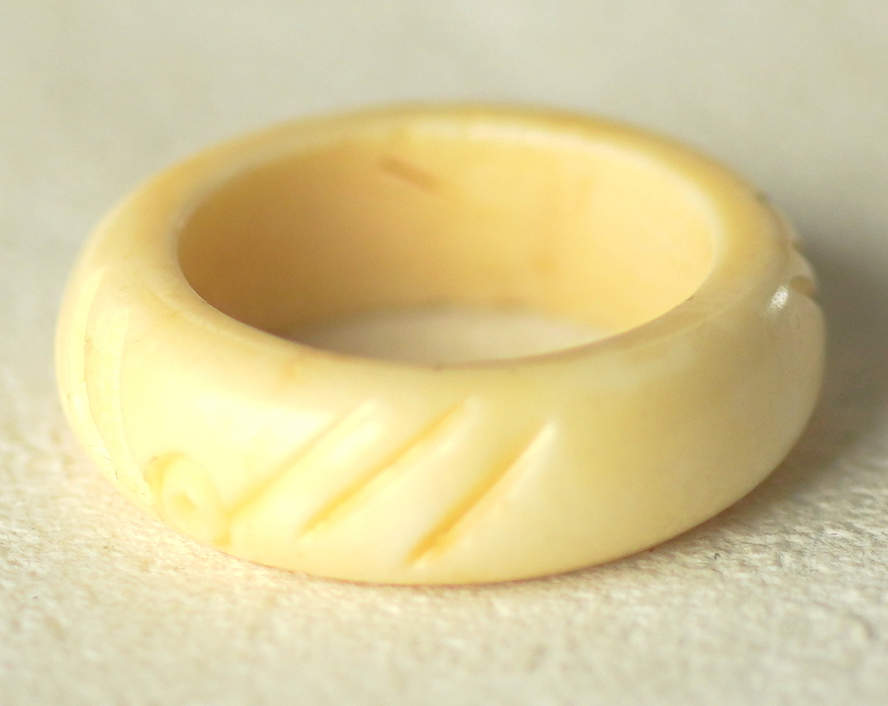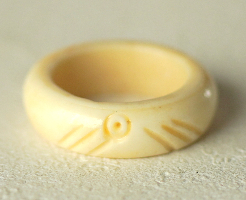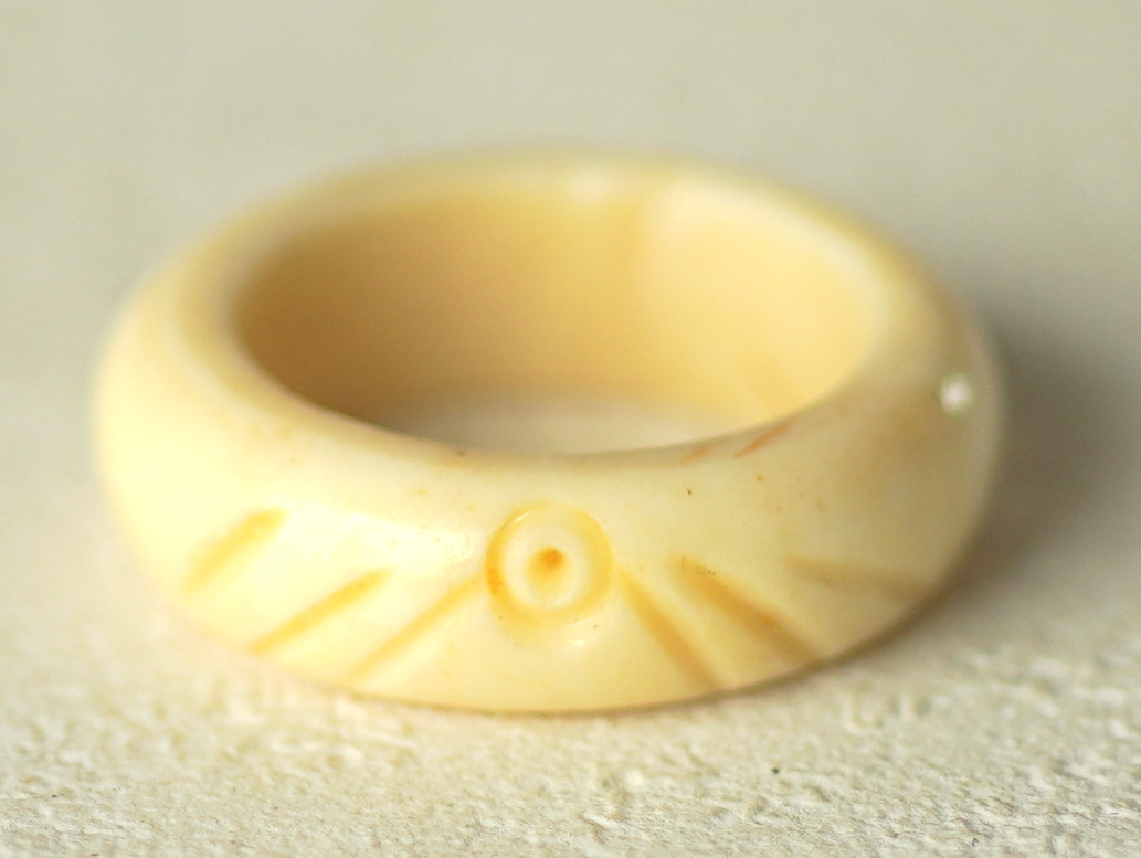 動物の骨で出来たリングです。