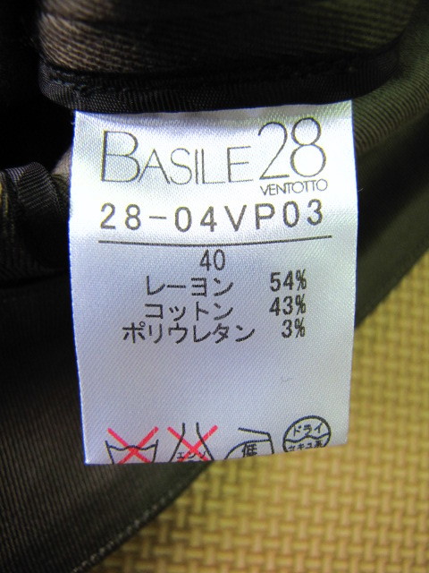 F925*バジーレ BASILE 28 ジャケット ライダース レーヨン コットン ポリウレタン カーキ サイズ40