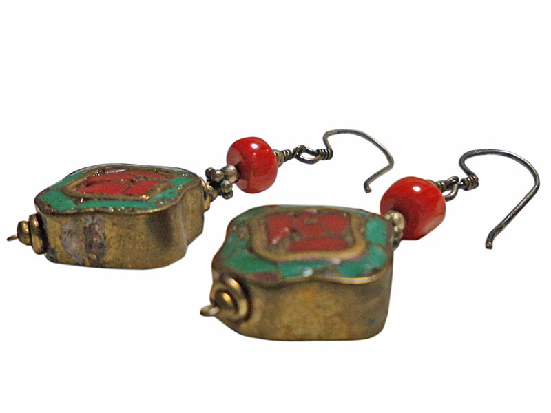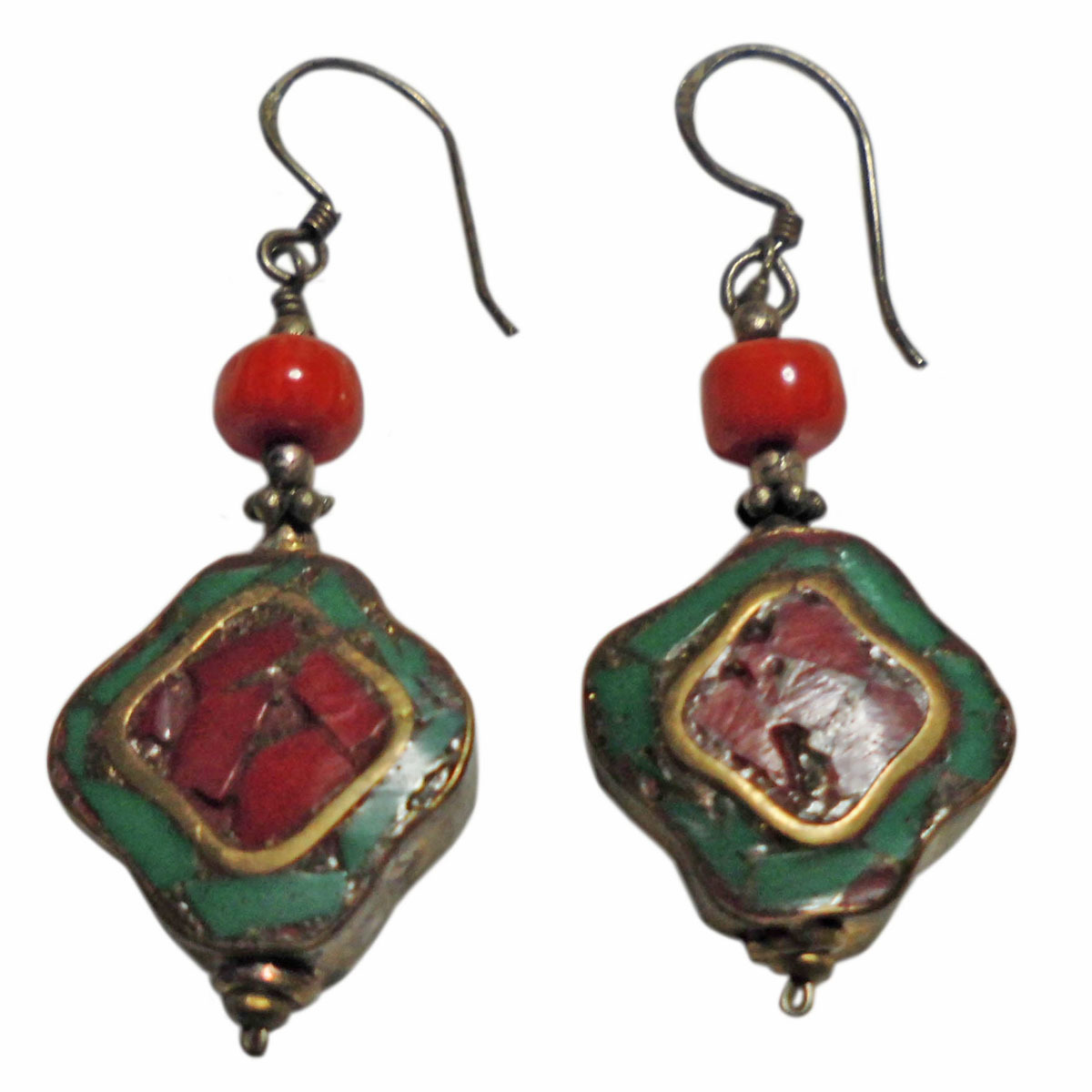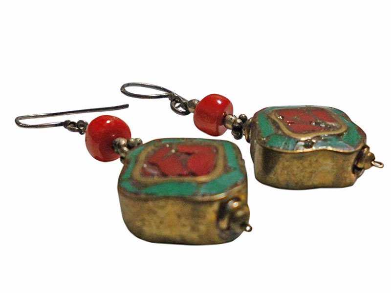 ■☆アジアン雑貨 ネパール銀職人 天然石メタルピアス ラピスラズリ・山サンゴ・トルコ石 (MTP-44)