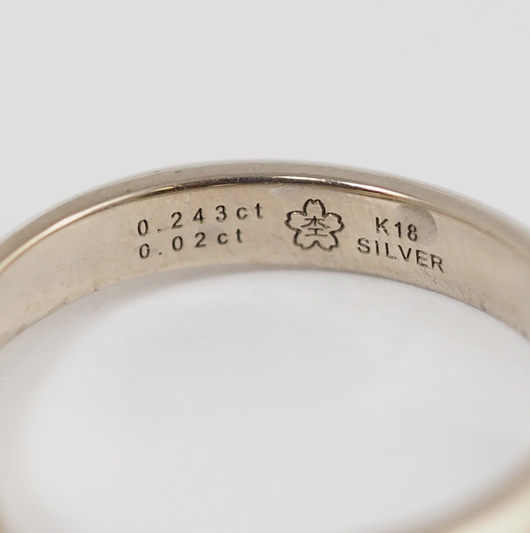 杢目金屋 SV/K18ダイヤ0.243ct/0.02ct E-VVS1-3EX(ハートアンドキューピッド) 月桜 リング 7号 ケース・鑑定書付 です。 美しくクオリティの高いダイヤに月明りに照らされたような輝きを放つ、優美な流れのデザインが上品なリングです。サイドに木目が施され、日本の美が息づいた洗練された印象を醸しています。 若干の小傷は見受けられますが、全体的には綺麗な商品です。皆様のご入札お待ちしております。 |