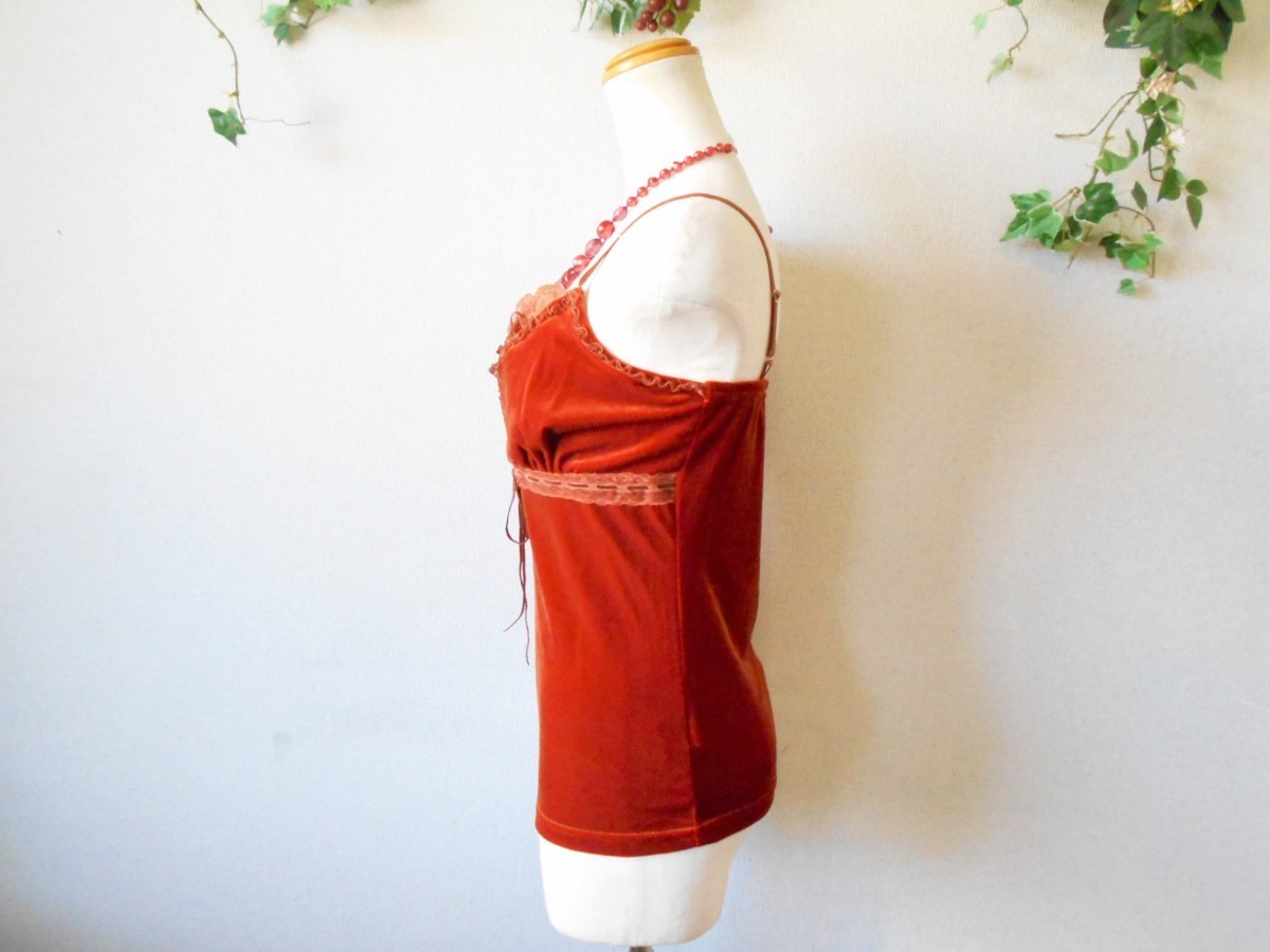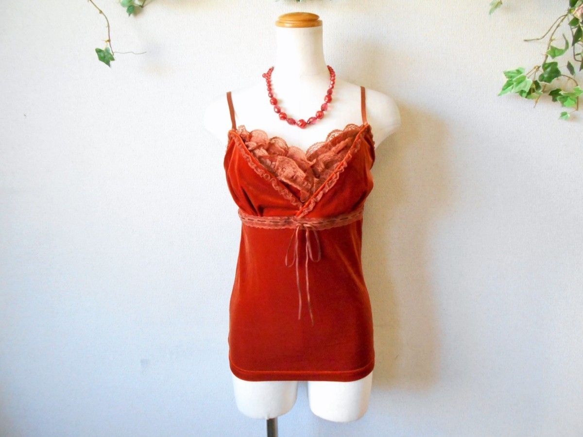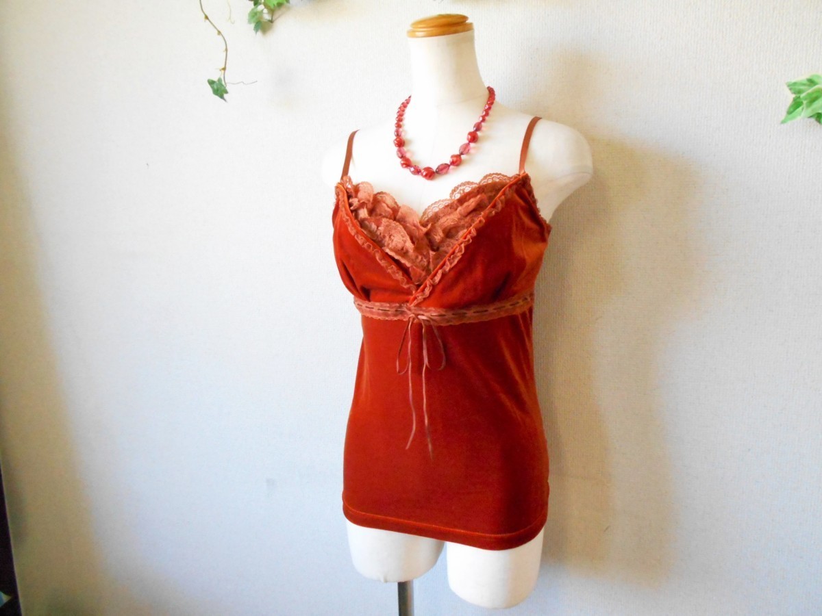 【ポイント】ヴメームのキャミソールになります。お色はオレンジに近い茶系で、ベロア生地の秋冬向きです。