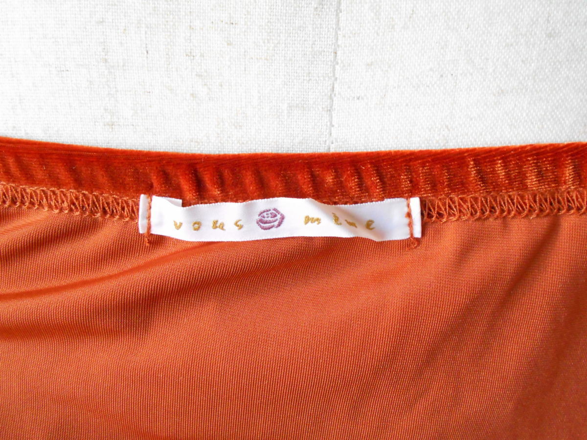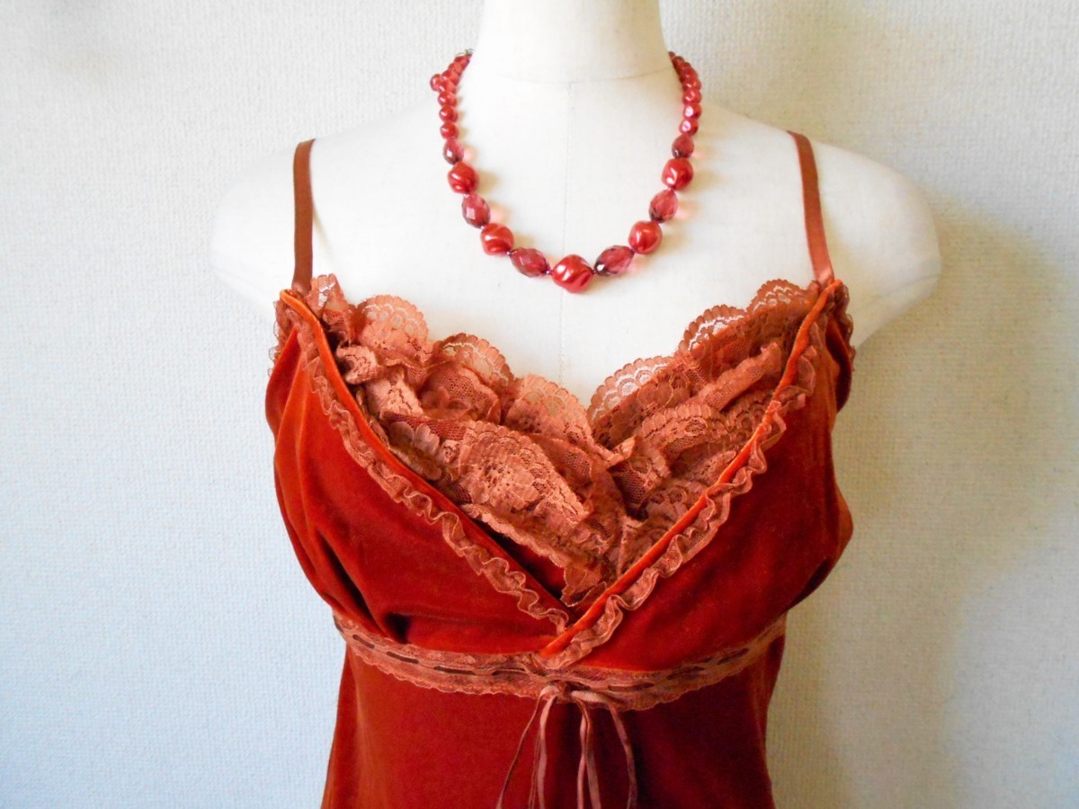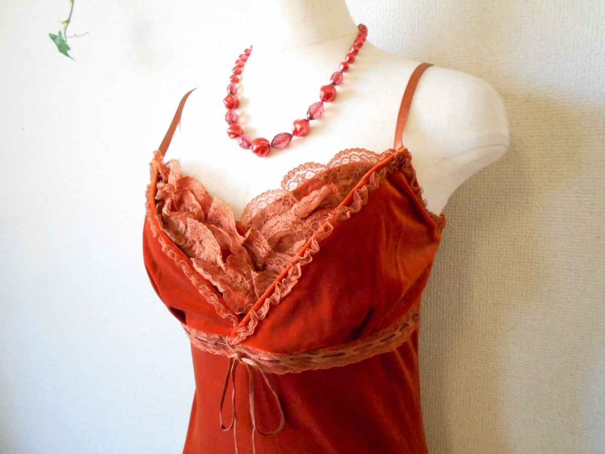 【ポイント】ヴメームのキャミソールになります。お色はオレンジに近い茶系で、ベロア生地の秋冬向きです。
