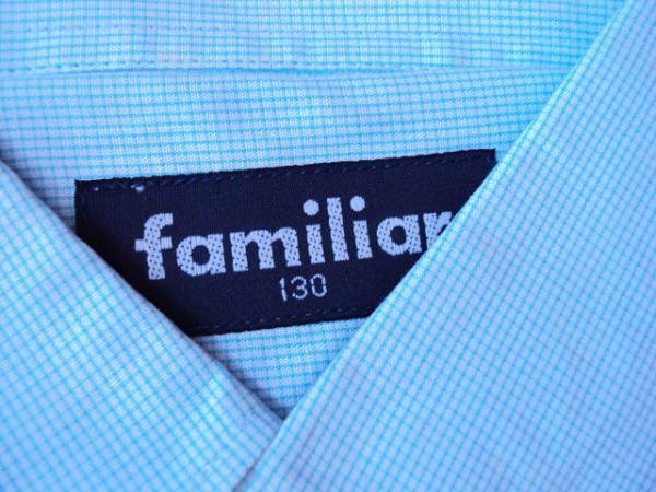 Familiarファミリアのシャツです。サイズは130cmです。お色はグリーン系です。保管時にシミがついてしまいました。使用品ですので神経質な方は御遠慮下さいね。ノークレームノーリターンでお願い致します。その他いろいろ出品していますので見て下さいね。 必ず自己紹介も御覧下さいね