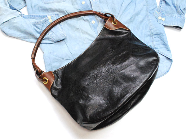 ロゴタグがポイントのショルダーバッグです。しっかりしたレザーなので、キズがつきにくく丈夫。