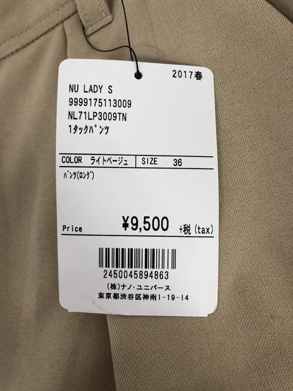 nano universe ナノユニバース タグ付き テーパード タックパンツ ボトム ベージュ SIZE:36 LH632022010504 | |