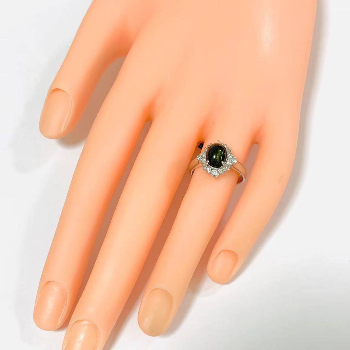 | 素材 | ■プラチナ Pt900 ■宝石:2.15ct トルマリンキャッツアイ・0.33ct ダイヤモンド |