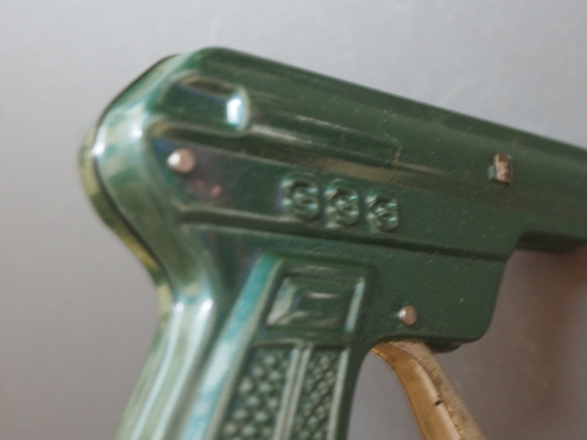 | 商品説明・コメント | 昭和レトロな水鉄砲です。 昭和ならではの造形が今見ても新しい物を感じるコレクションアイテムになります。 銃器は全くの専門外ですので確実な確認は出来ませんので動作不可のジャンクとして御考慮下さい。 トイガン・モデルガンと記載が在りますが正式な表現は解りませんが玩具銃と言った趣です。 この手の古い品は動作確認の際ですら故障する可能性も御座いますので、一切の動作確認は致しておりません。 模したで在ろう機種を主題に記載しておりますが造形がかなり荒く、原形の判断が難しいので参考程度です。 先ずオークション市場に現れる事が無い逸品です。 欠品・破損個所に尽きましても当方では判断が付きませんので写真にて確認頂き、自己判断にてお願い致します。 当然写真に撮影されているもののみの取引となります。 梱包の際は商品をそのままレターパックに入れ、発送致します事を御了承下さい。 相応な年数が経過した中古現状品の為、題名の記載は御参考程度にお考え頂き、御自身の目で写真を御確認頂き詳細等に於いても納得の上で御考慮下さいませ。 状態は写真をご確認頂き確認下さいませ。 写真に撮影されて居ない瑕疵に尽きましては保証は致しかねます。 一般的な中古ジャンク品になりますので新品の同様なクオリティを求められる方や極端に神経質な方にはお勧め致しません。 写真掲載数の手前、写真では確認出来ない瑕疵が有る事も御座いますし全ての検品は行って御座いませんので御注意下さいませ。 入荷の際に有る程度の確認はした後、出品して御座いますが原則として社外補修・欠品・塗装・凹み・錆・変形・色褪せ・色剥げ・名前の記入・変形・汚れ・加水分解・折損・傷・割れ・機能的な欠陥等々が有る前提でのジャンク扱い、補修ベースのノークレーム、ノーリターンでの取引を希望致します。 上記の通り、原則瑕疵担保責任はお受け致しませんので御了承下さいます様御願い致します。 店頭と併売になりますので稀にオークションで御成約を頂きましても店頭で売れてしまう事も御座いますので御了承下さいませ。 上記の条件を御理解頂けない方の入札はお断り致します。 此方の商品は「オークション形式」ですので、一切の値引き交渉はお断り致します。 特に「自身の相場感」「市場価格」を振りかざしてくる方が後を絶ちません。 値段は当店の主観に依る物が多くあるのは事実ですが上記の相場に合わせるつもりが無い事は御承知於き下さいませ。 昨今、自身の主観・倫理観・思い込み・想像にて商品・取引性質を明らかに勘違いしている迷惑な方が増えております。 説明文を確認せずに入札をしクレームを付ける方が増えておりますのでご慎重に入札を頂けます様宜しくお願い致します。 |