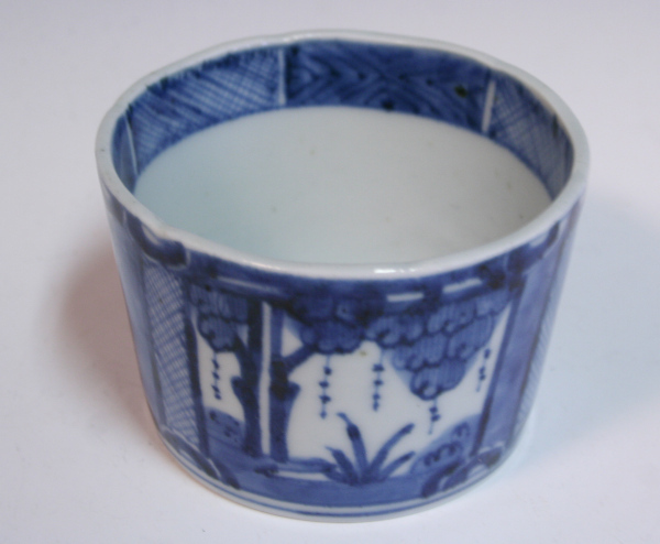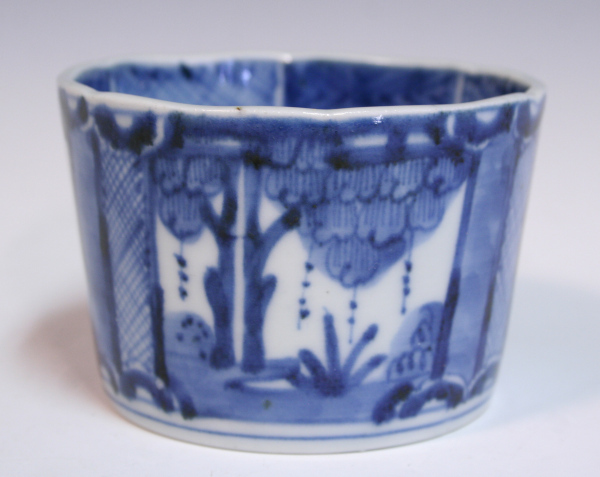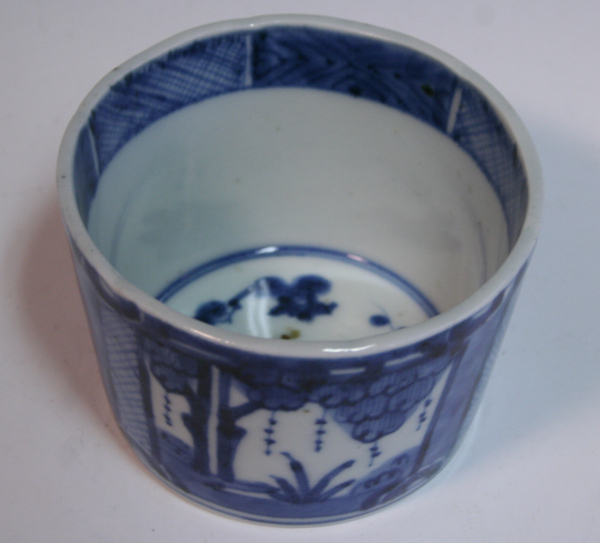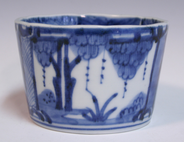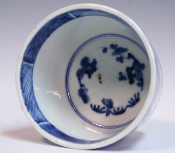 古伊万里、染付樹木文蕎麦猪口です。時代は江戸時代。大ぶりのサイズ。見込みには松竹梅文。蛇の目高台です。古いものですので、汚れ、スレキズ、フリモノ、釉切れなどございます。状態の詳細は画像にてお確かめください。箱は付いておりません。お分かりの方、宜しくお願いいたします。