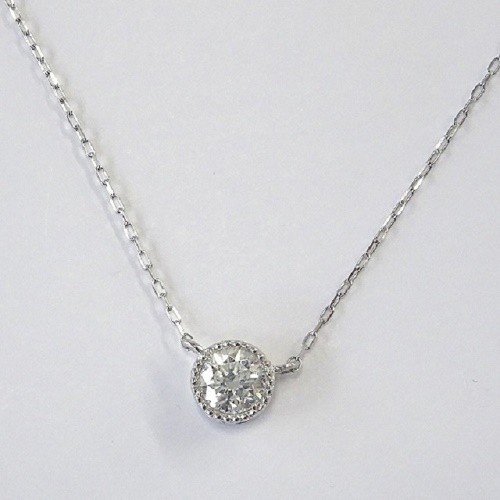 クリア系のダイヤモンドをミル打ちの枠でシンプルに留めたペンダントです。