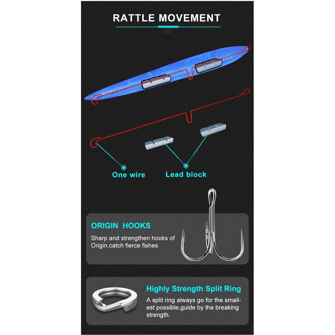 ・長くほっそりとしており、本物のイカナゴに基づいた立体的な構造。強い硬さをもつABS素材のボディで強度も安定しています。