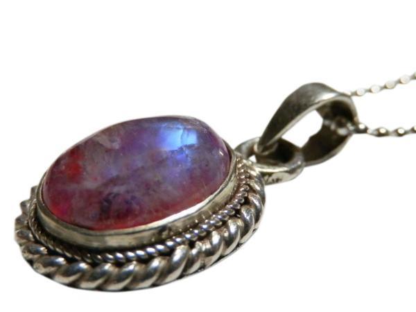 ■☆アジアン雑貨 ネパール銀職人 ピンクムーンストーン・プチネックレス (PUP-2)
