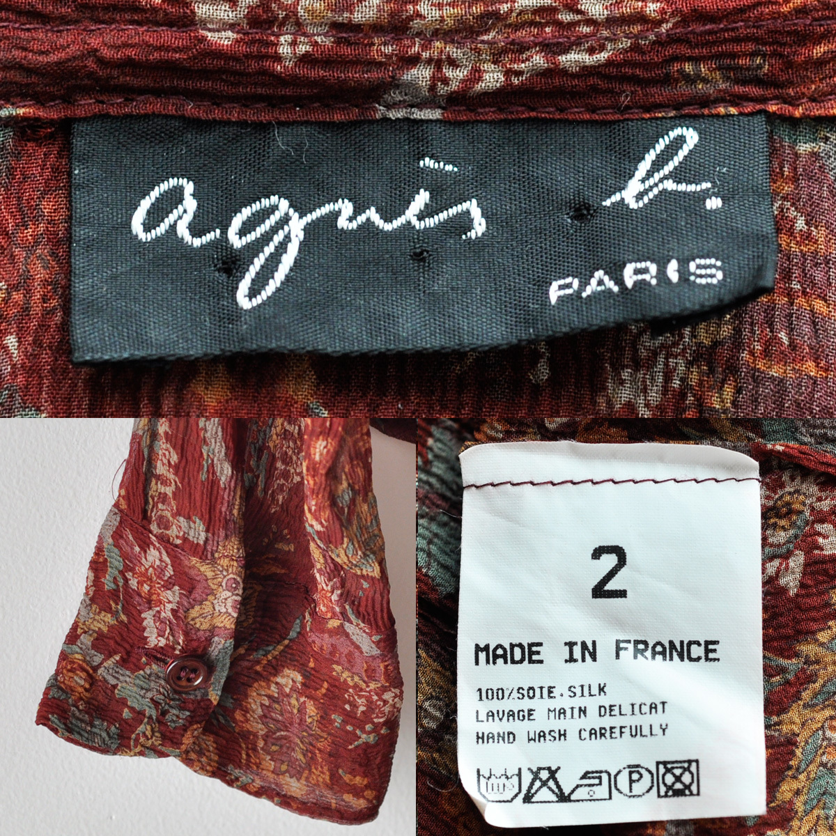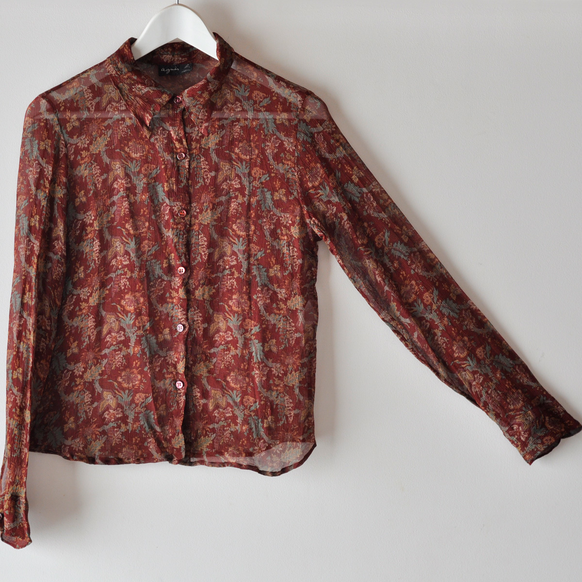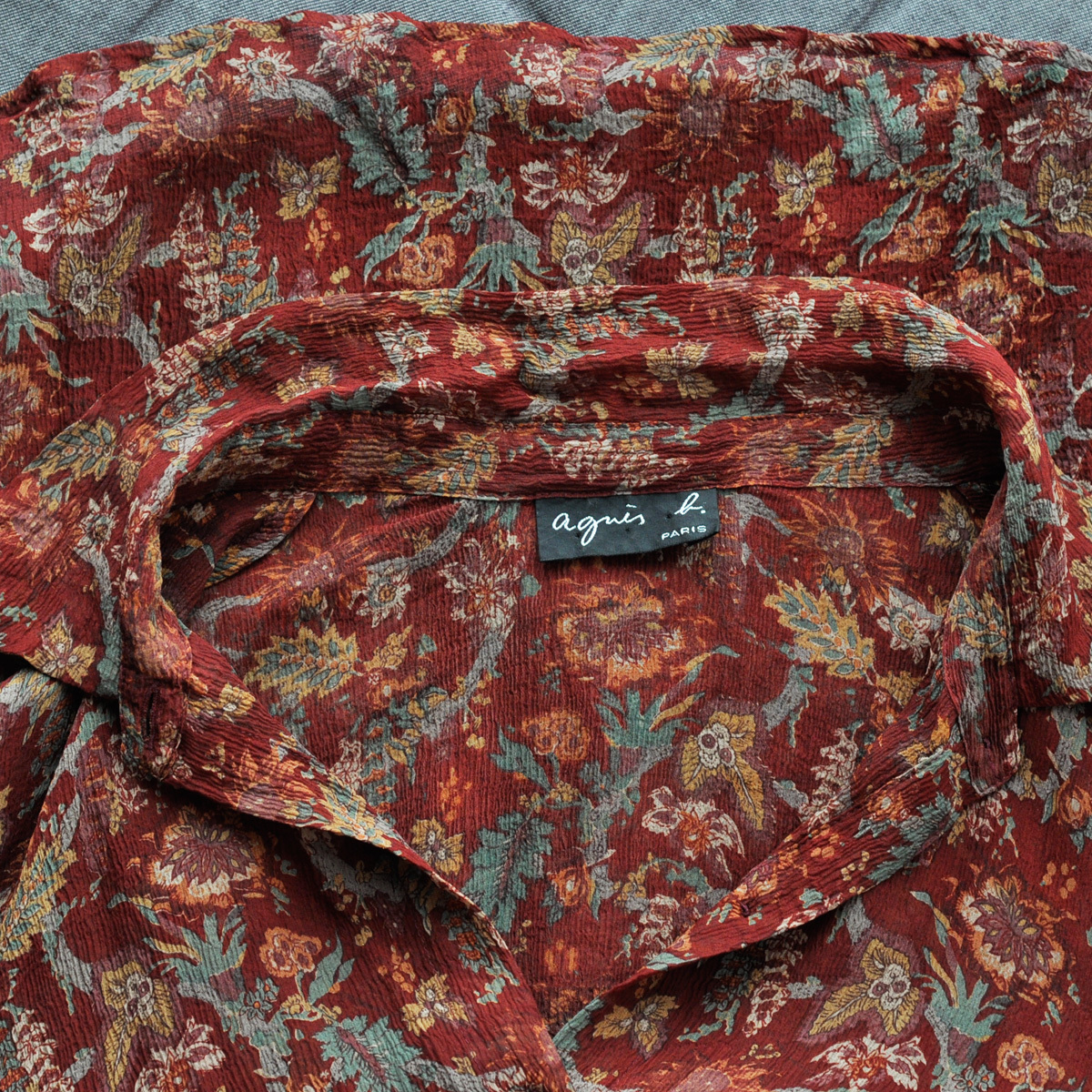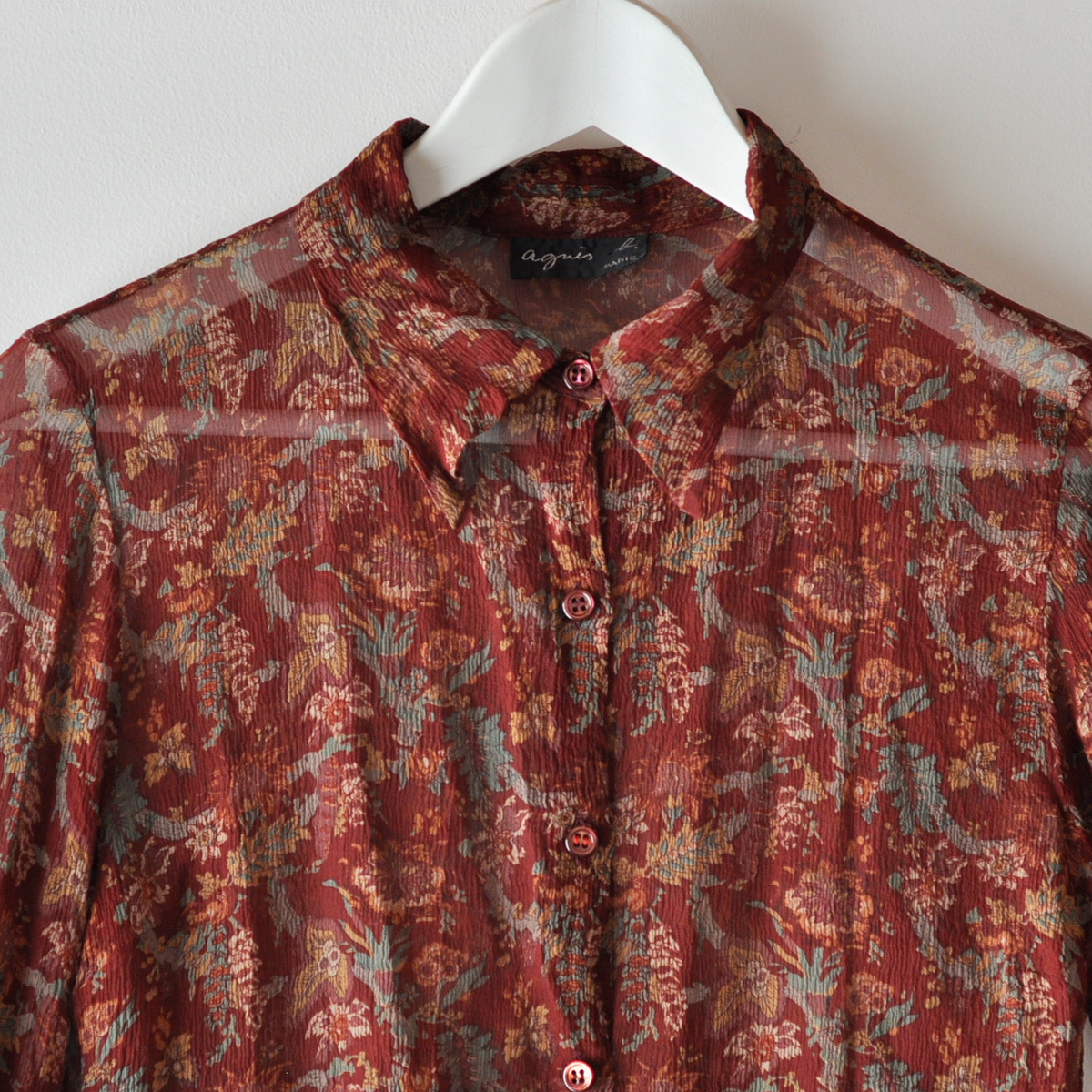 80s 90s agnes b. 総柄プリント シルク 長袖 シアーシャツ です。フランス製。
