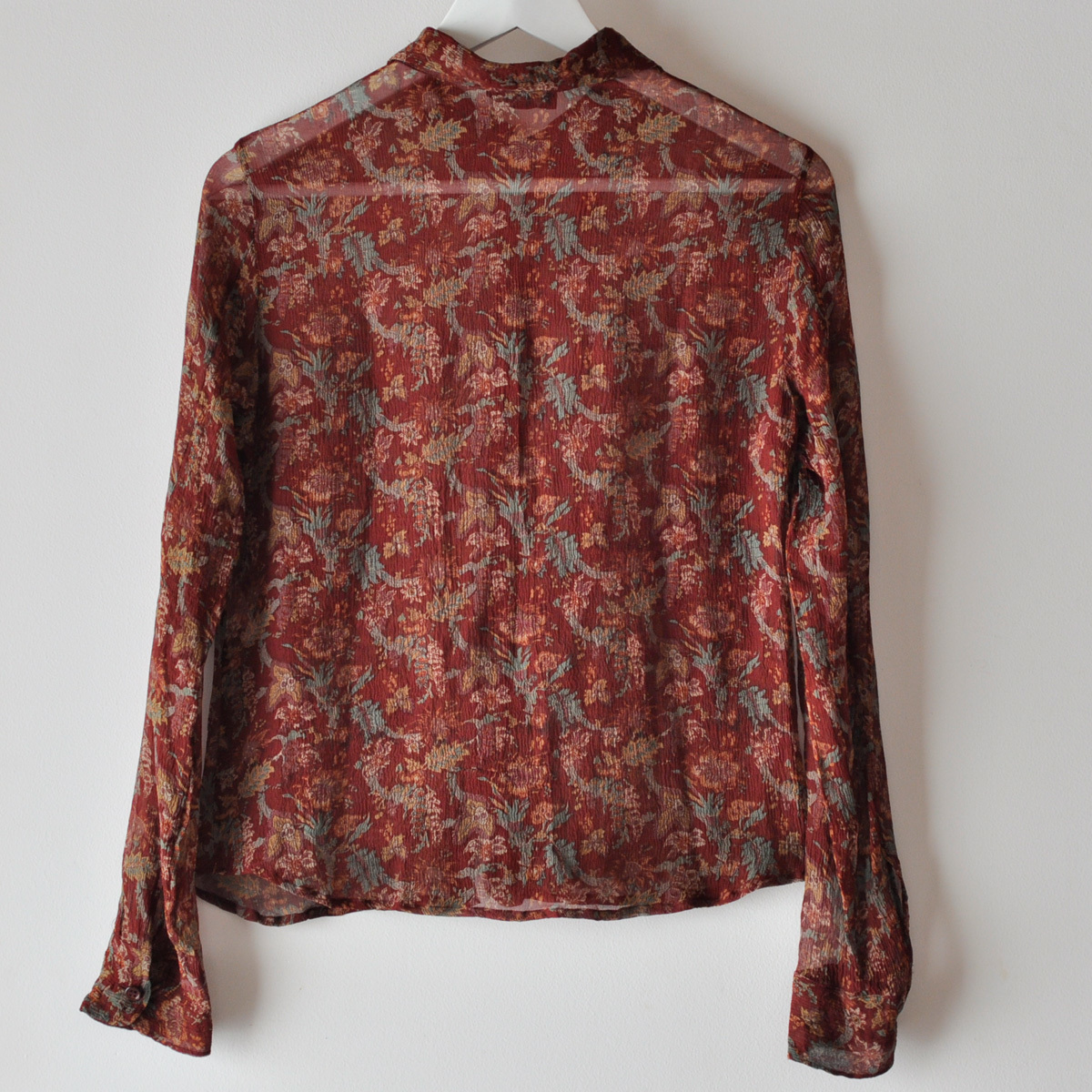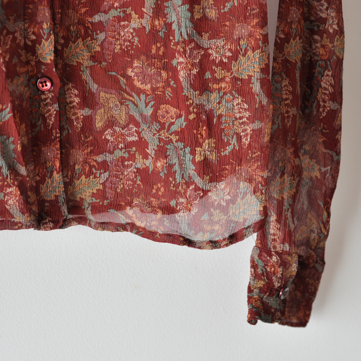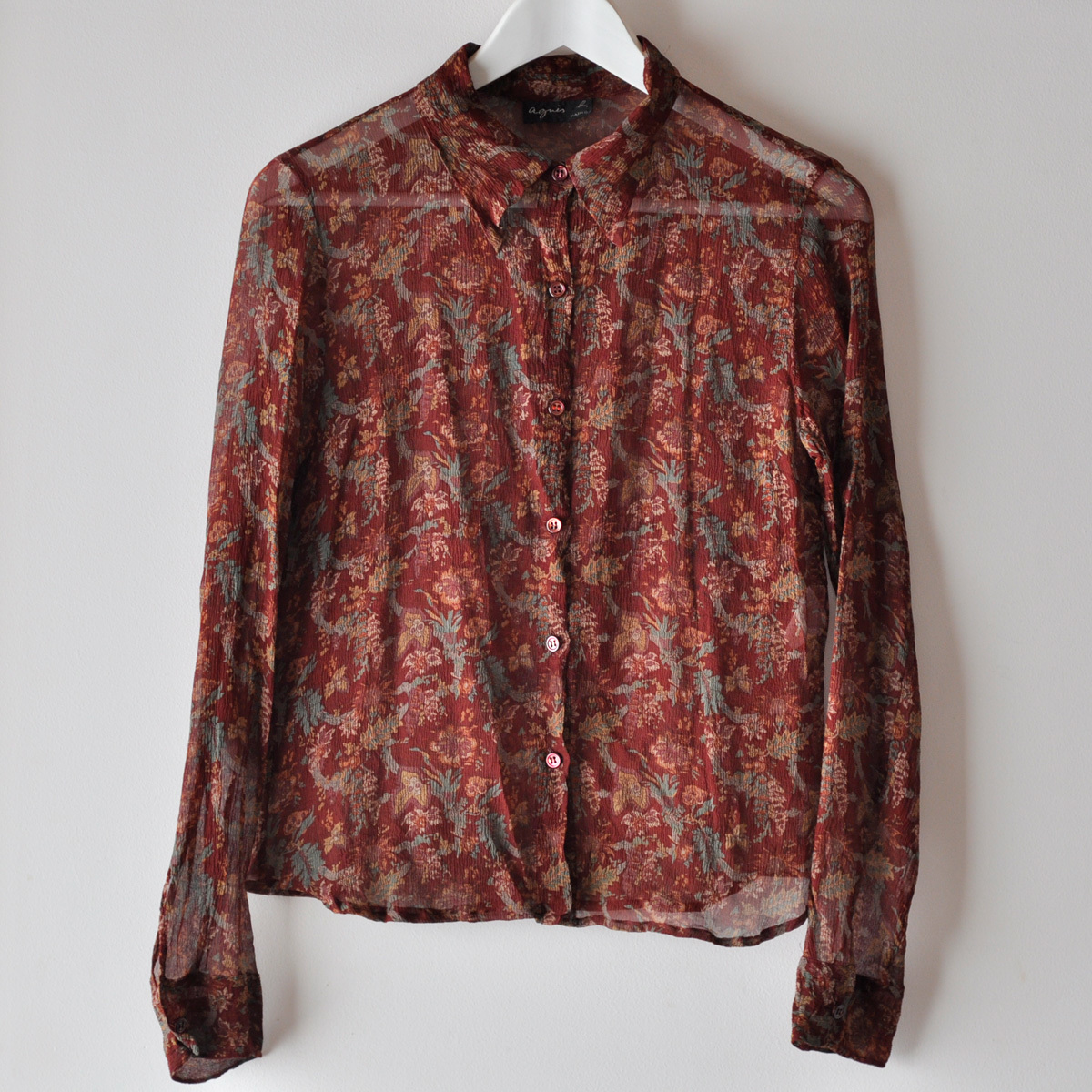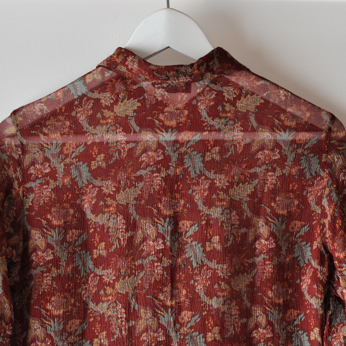 80s 90s agnes b. 総柄プリント シルク 長袖 シアーシャツ です。フランス製。