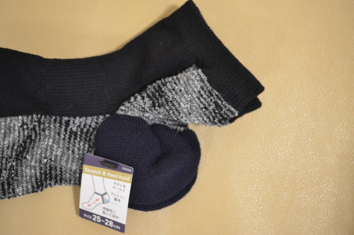 綿混で柔らかく、カカトをホールド&ズレにくい編地になってます。